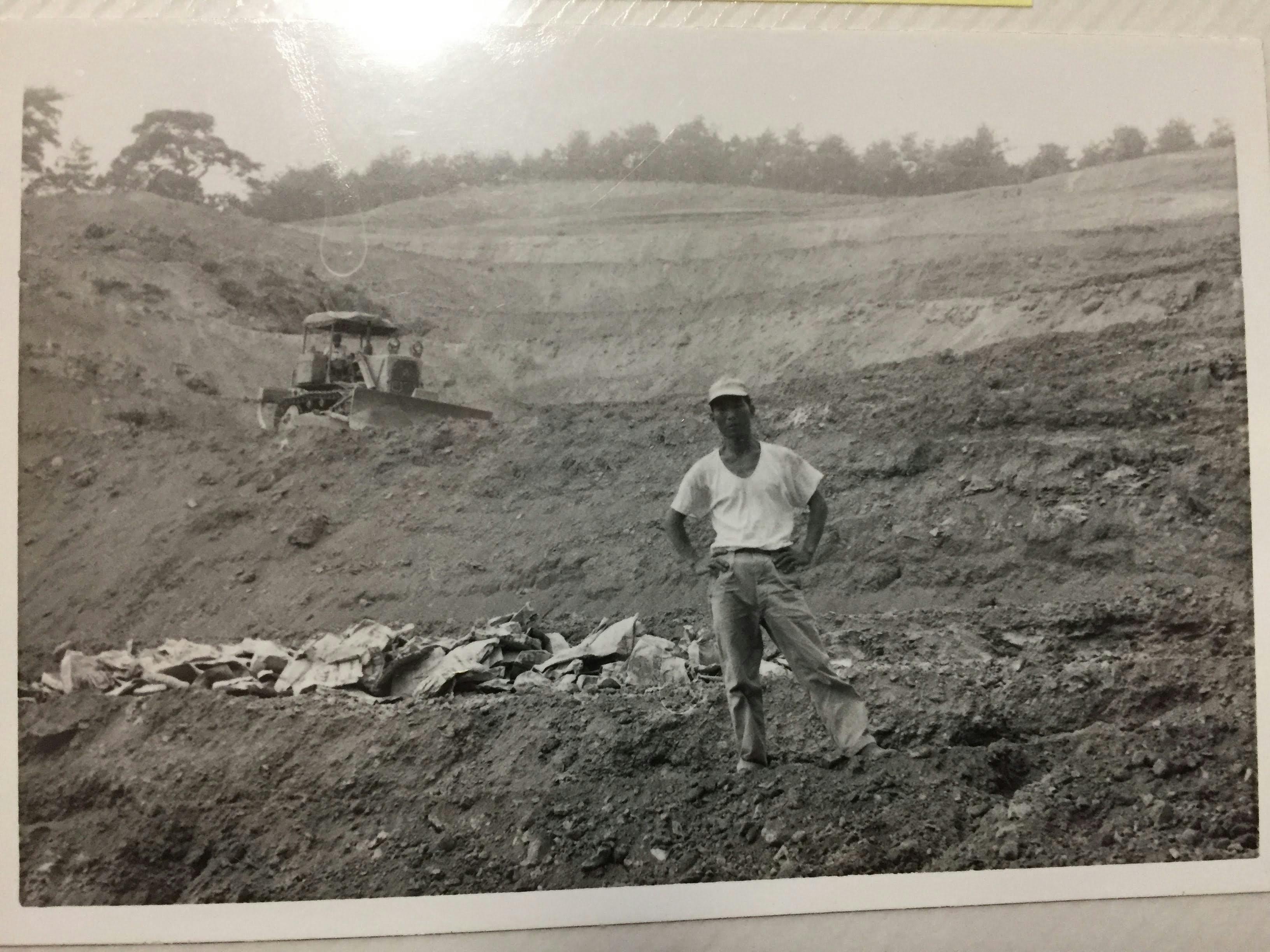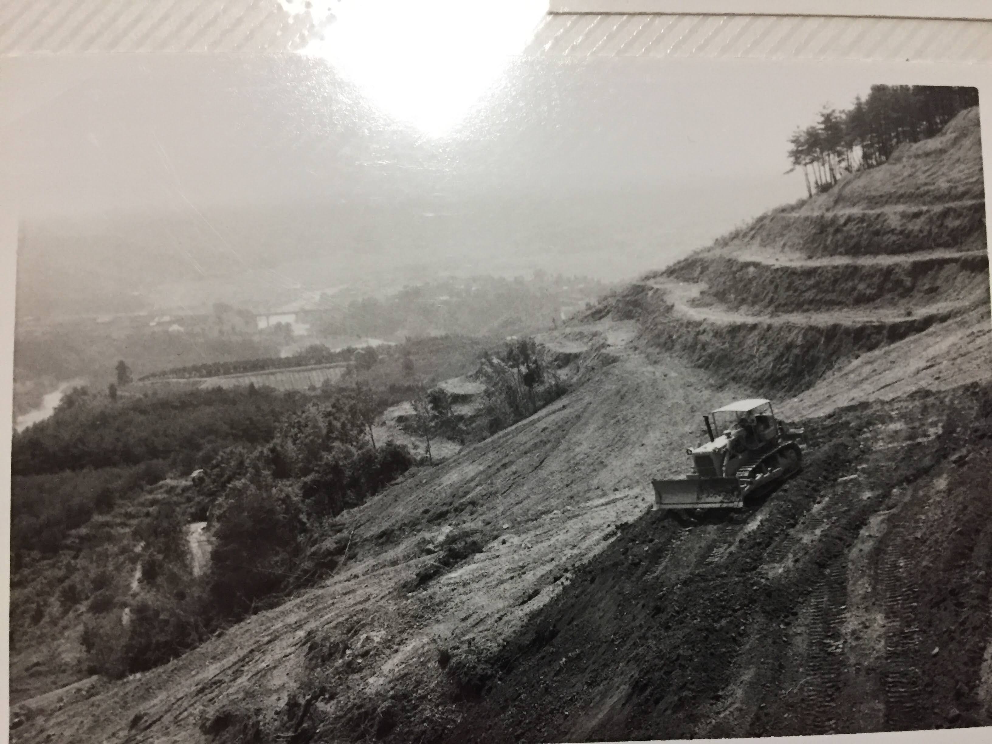 写真はブルドーザー開墾の様子。白いTシャツは祖父です。
