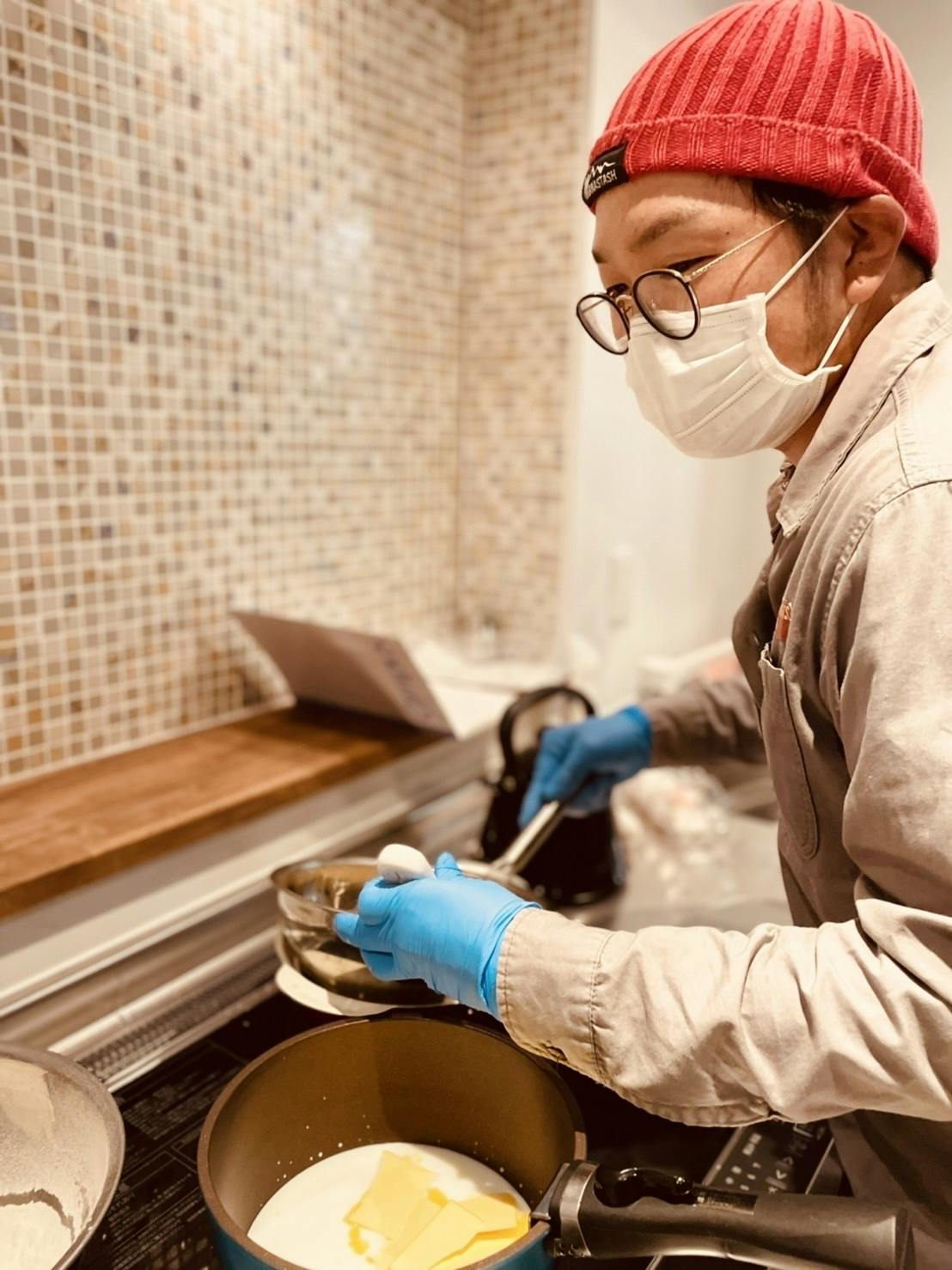 写真はお店オープンに合わせてクロカンブッシュを作ってくれている時のものです。