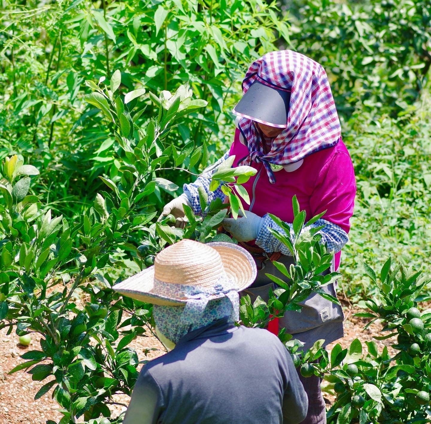 真夏の摘果作業はとても過酷です。