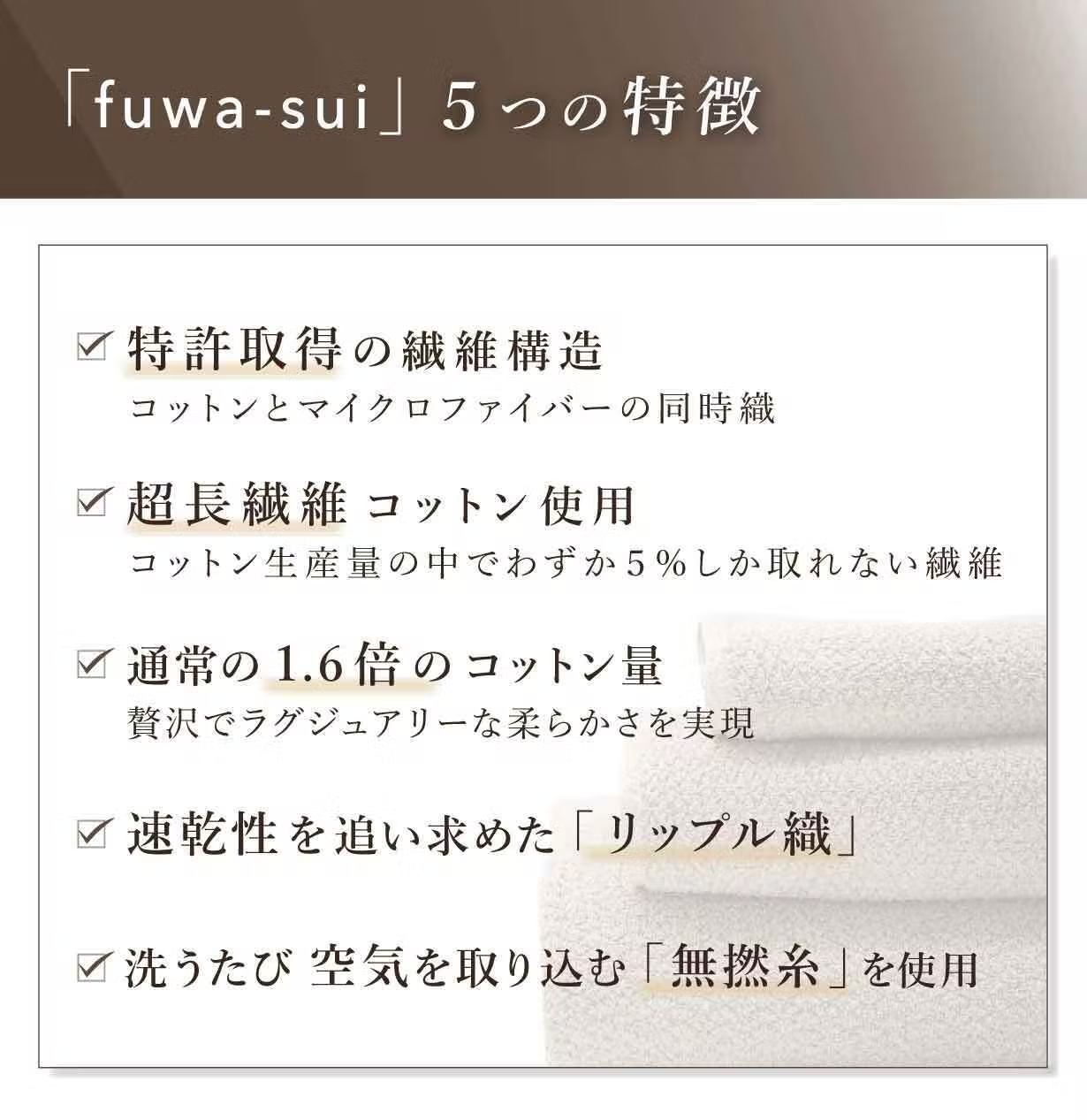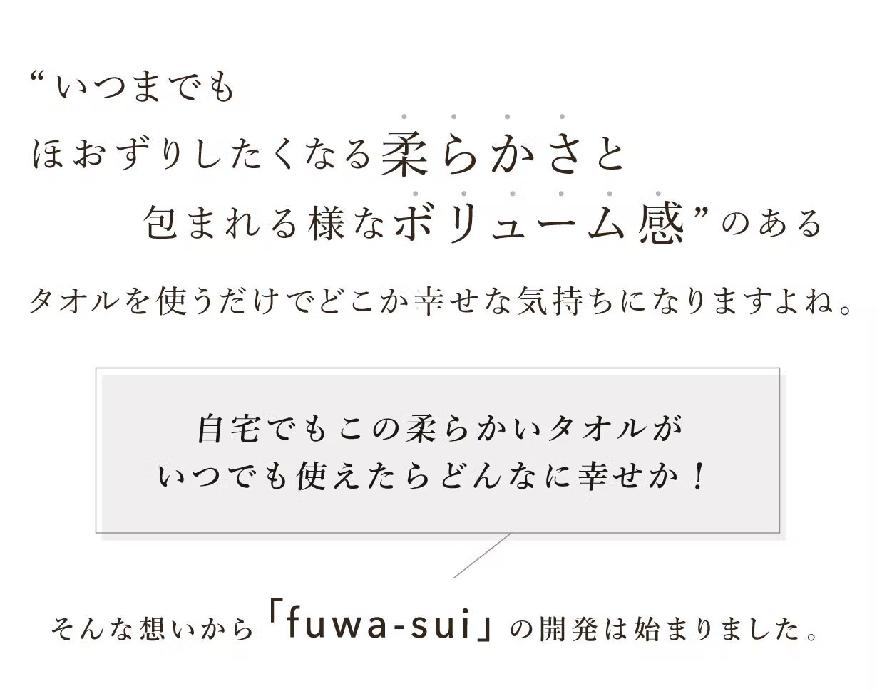 fuwa-suiの吸水性・肌触り・速乾性の3拍子が揃ったタオルをぜひお試しください。