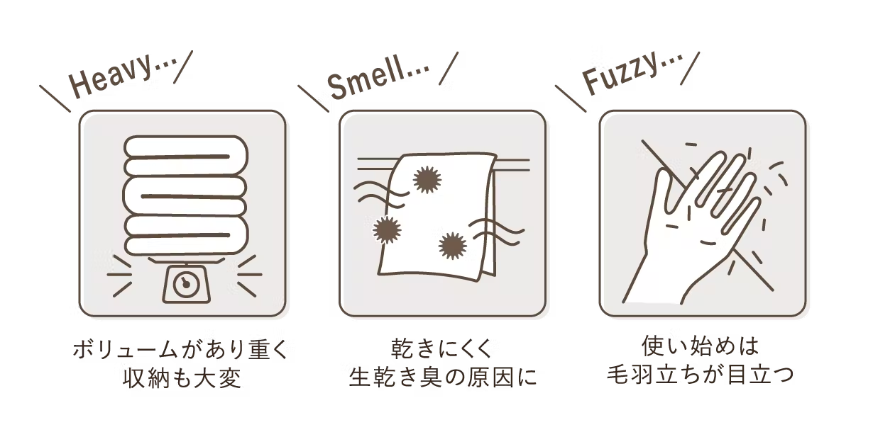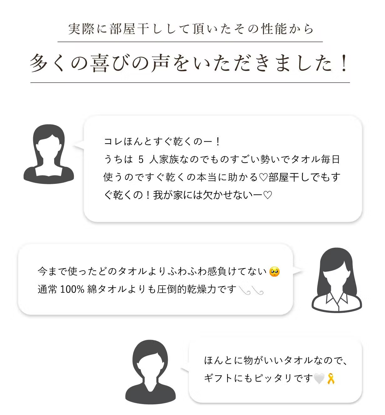 ふわふわしているのに、きちんと乾きやすくて、部屋干しもできるタオルはないのか?と弊社は考えました。