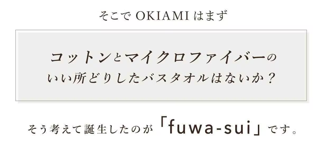 日本のメーカーは実績が無いと中々採用に至らない為、いつかこんないい技術なら自分で製品化に結び付けたいという想いからOKIAMI初めてのオリジナル商品「fuwa-sui」に採用を決めました。