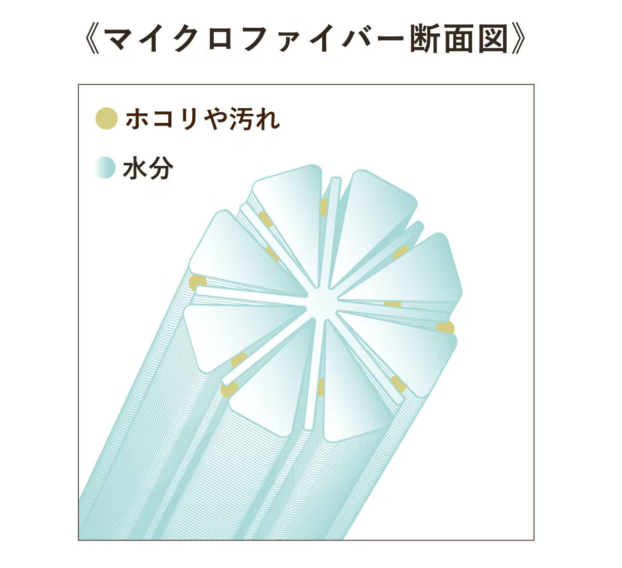 繊維の細さは、髪の毛の100分の1と極細でとてもやわらかく繊維の表面の「ぎざぎざ」で汚れをかき取り、水をぐんぐん吸うことで人気の素材です。