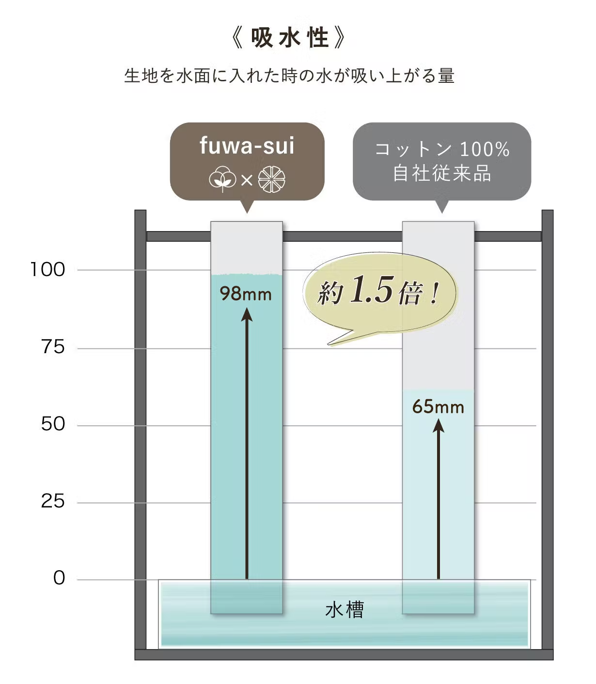 fuwa-suiはわかりやすく言うと、コットンとマイクロファイバーのいいとこ取りをしたタオルなんです!