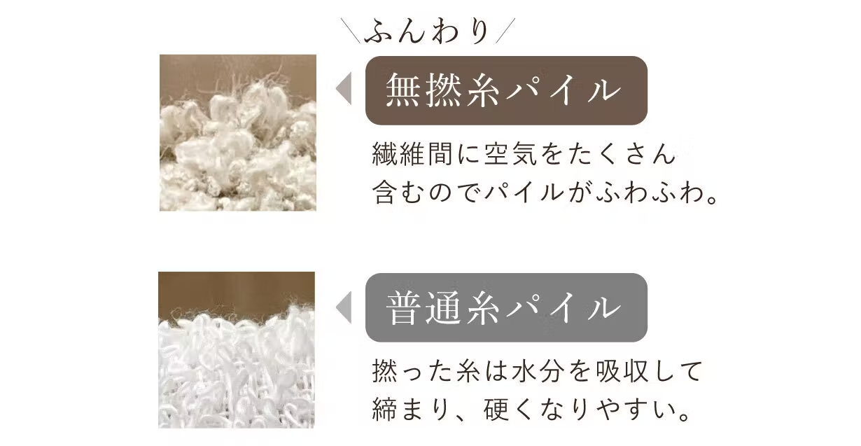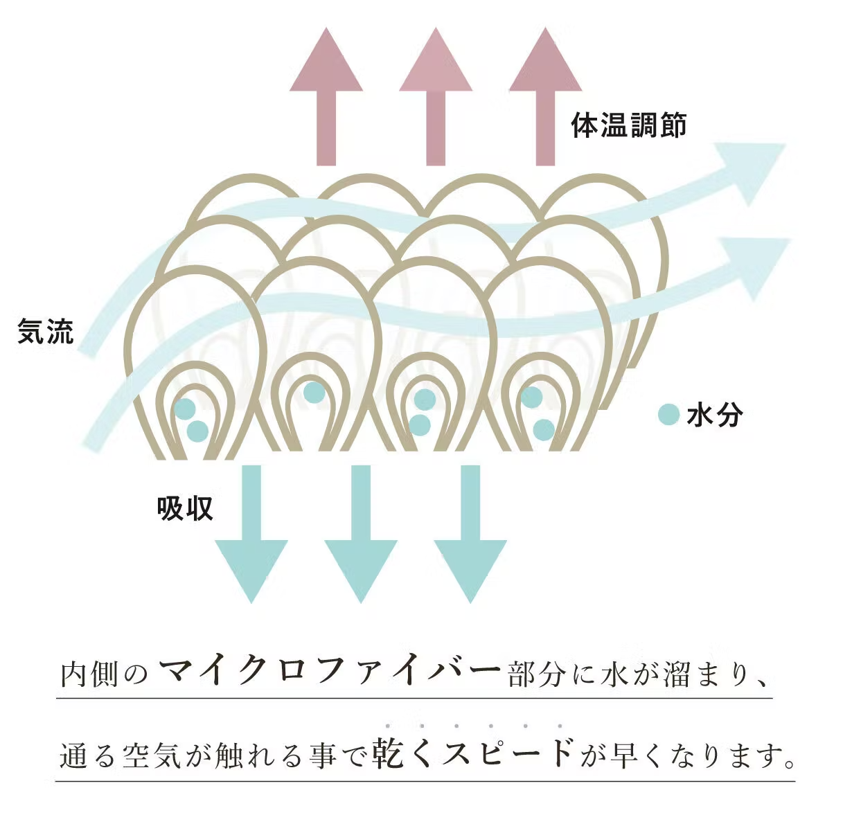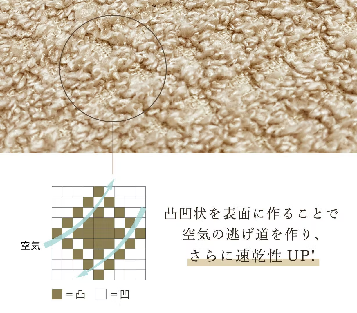 fuwa-suiは「ダブルパイル構造」になっている事で空気がたくさん通ります。