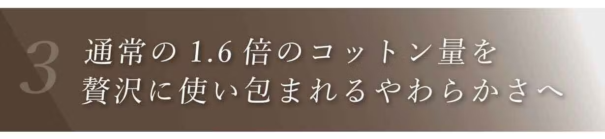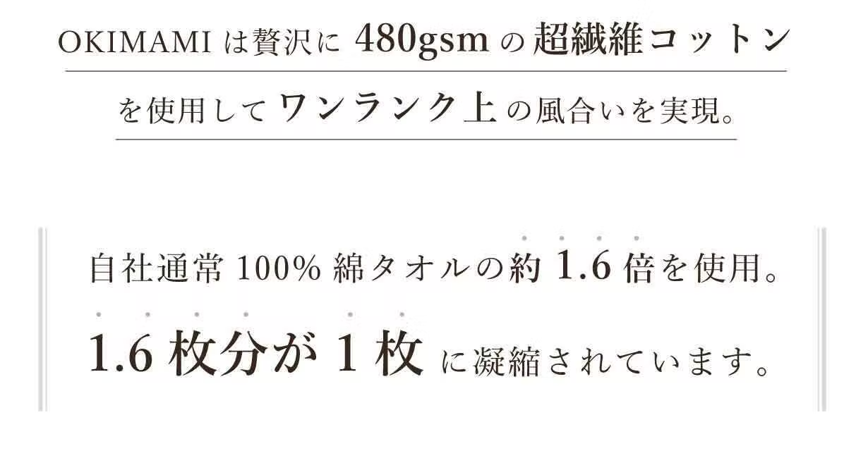 従来のラグジュアリータオルで課題だった重さも使い勝手の良い重さを考えつつ最適な風合い感のバランスを何回も試作して辿り着きました。