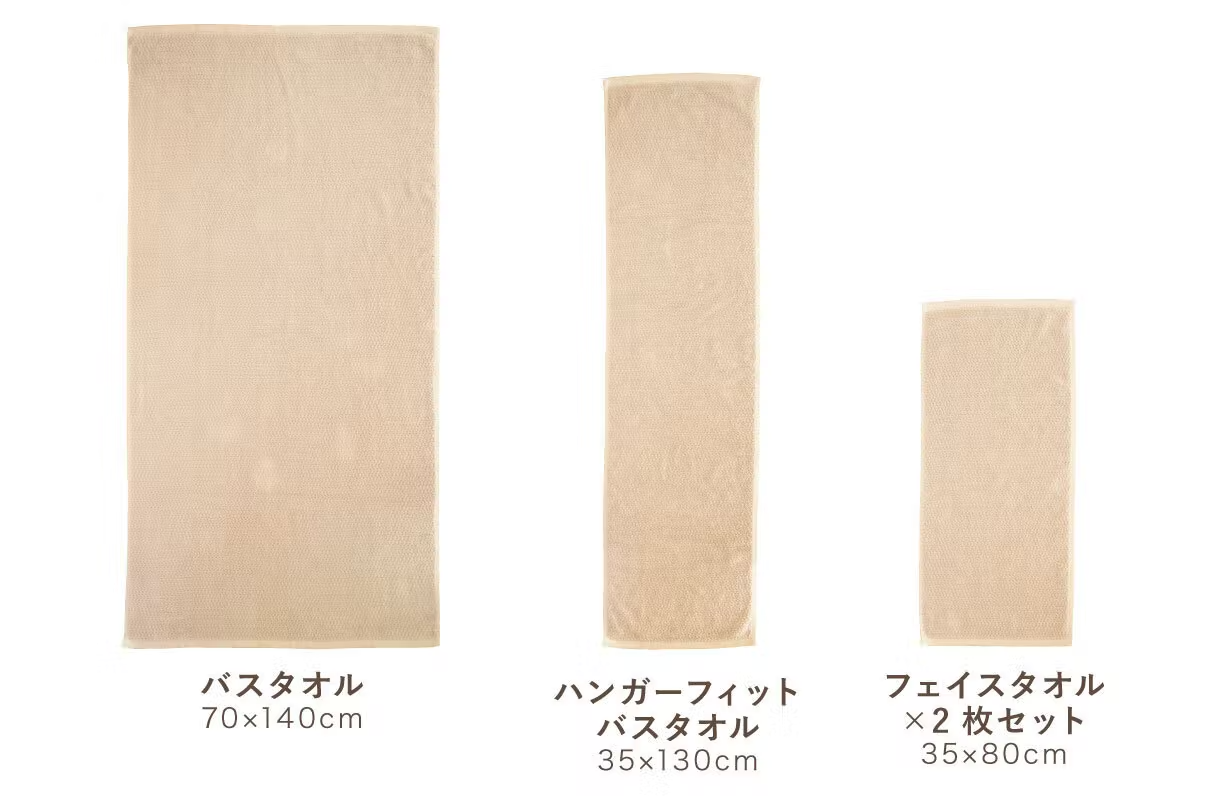 fuwa-suiの吸水力だからこそ1サイズ小さいバスタオルでも十分利用する事ができます。ハンガーフィットバスタオルは、幅がハンガーサイズに設計されています。