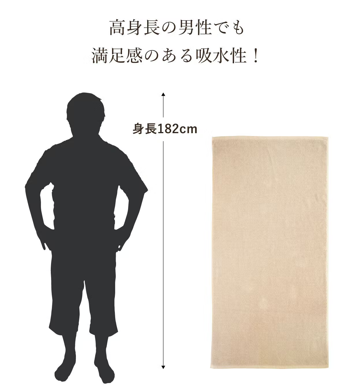 大柄な男性でも、家族でこどもと入る時もこれ一枚で包み込む贅沢なサイズ