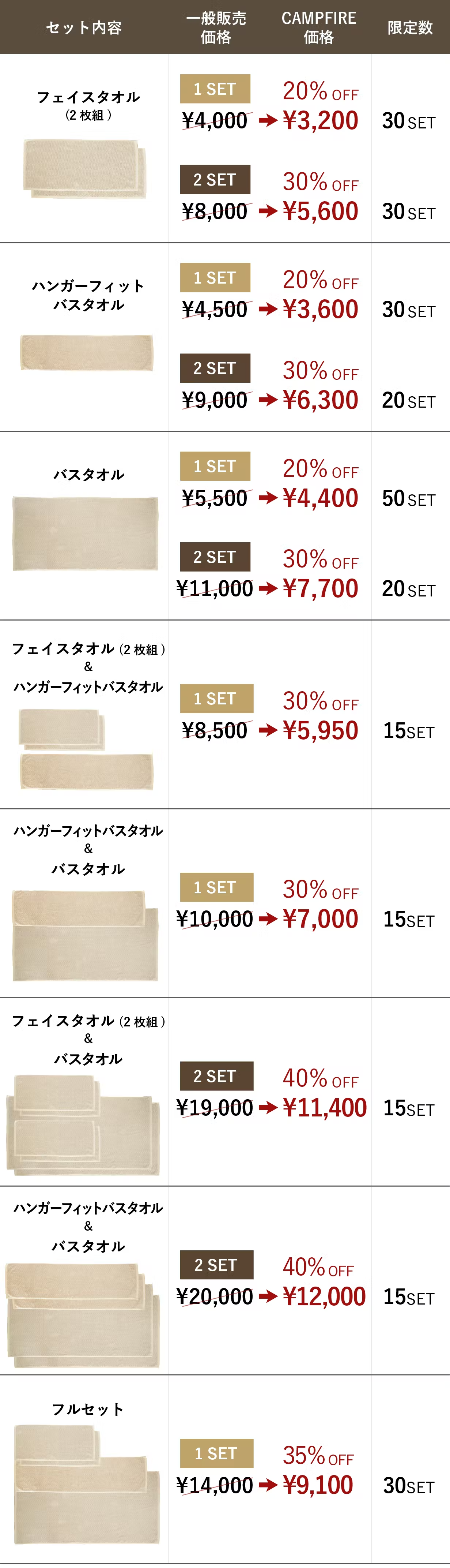 2022/12/26 17:13こんばんはOKIAMI株式会社です!いよいよプロジェクトも残り6時間!本日の23時59分までとなります!そんな最終日になんと「CAMPFIREのメールマガジン」で最も今注目されているプロジェクトとして一番大きくプロジェクトを取り上げて頂きました!海外メーカー品が多い中fuwa-suiはOKIAMIオリジナルブランド品で、貴重な市場に5%しかない超長繊維コットンを使う事でシルクのような滑らかさと、特許構造で速乾性を両立したタオルとなっています!今日まで限定で最大40%OFFのリターンを設定しております!この機会に買うのが最もお安くお買い求めいただけるのでぜひお試しください!引き続き応援宜しくお願いします! もっと見る残り1日をきりました!本日お申込みの方年明けすぐ届きます!