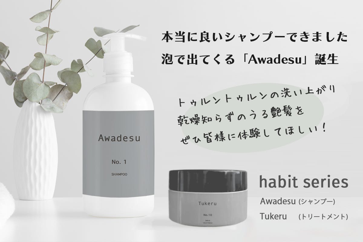 今回リリースする、habit seriesの新感覚の泡シャンプー「Awadesu」とトリートメント「Tukeru」