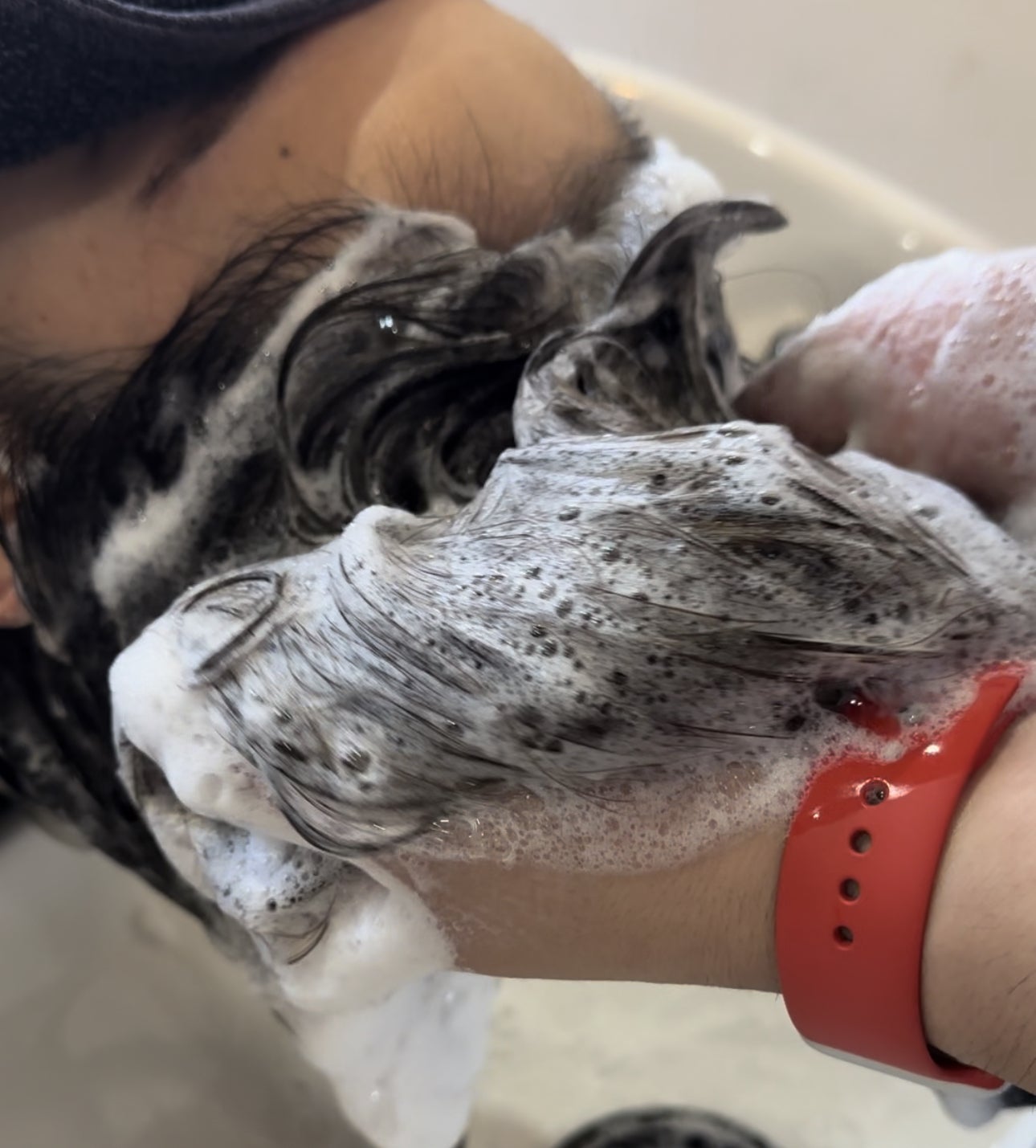 次に、シャンプー中のストレス軽減です。洗い上がりがサラサラやしっとりなど、そのようないいシャンプーは数おおく見られます。Awadesuもその一つです、ただこのAwadesuは洗っている最中もツルツルしっとりした触感を感じることができます。これはその後の水洗中も続くことで泡だけでなく質感でもストレスなく美髪を手に入れることが可能です。