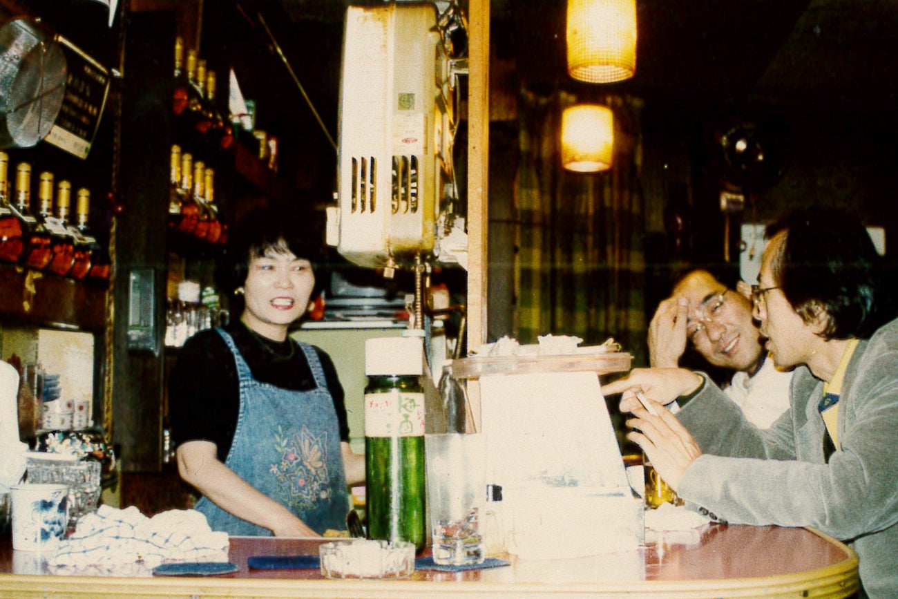 多くの著名人がまだ駆け出しだった頃、紅を切り盛りする若い頃の2代目洋子ママ。