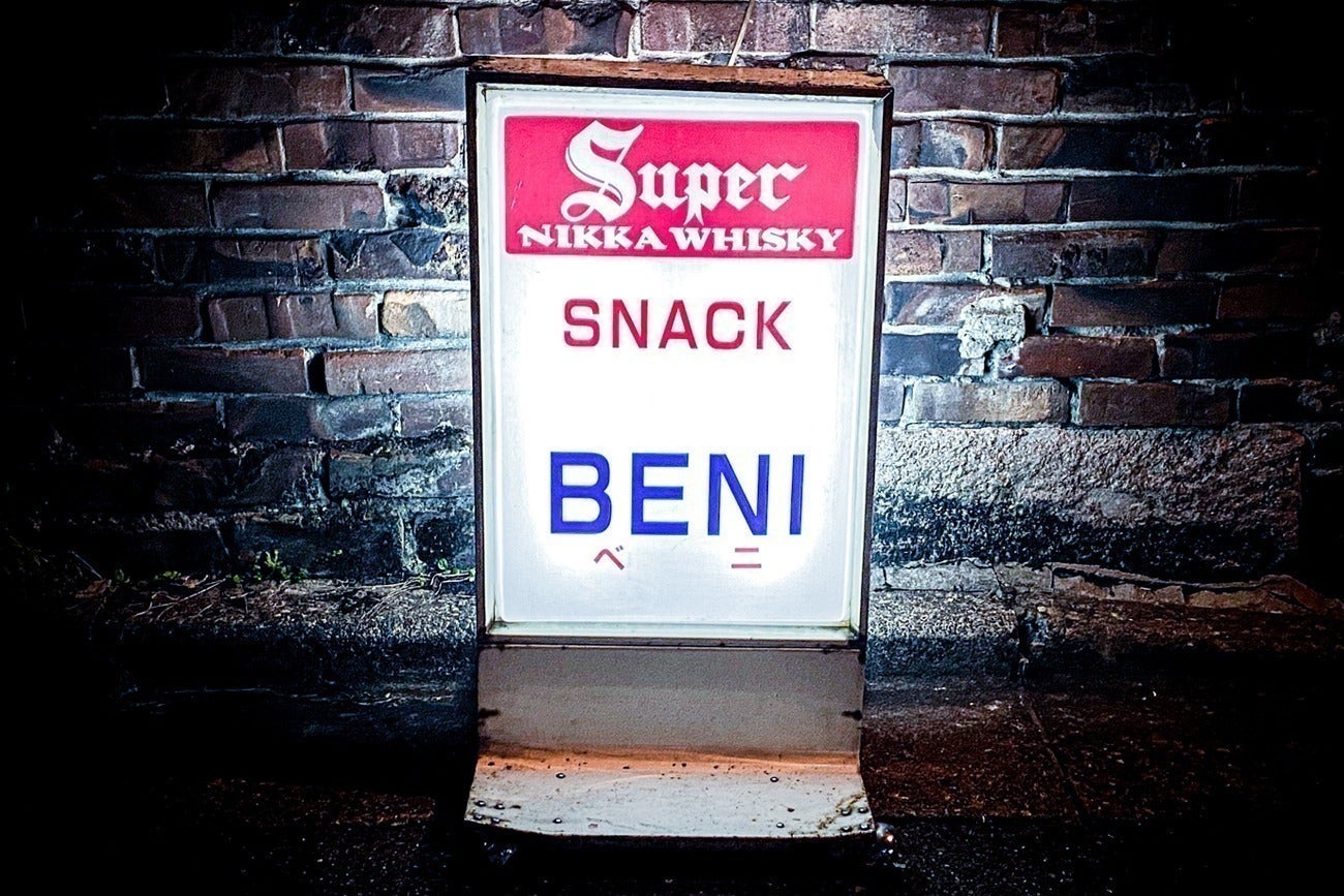 ただ1軒だけ、気になってはいながらもなかなか扉を開けられなかったお店がありました。それが、歴史を感じる外観でひときわ存在感を放つ紅でした。明かりの漏れるガラス越しに中を覗いてみては、決心がつかずに断念する日々。コロナ禍でスナックの閉店が相次ぐ中、この紅も遠からず閉まってしまったら──そんな焦りが背中を押し、ついに開かずの扉を恐る恐る開けてみました。きっと怖そうなマスターからの洗礼を受けるだろうと思いきや、そこで待っていたのは、なんとも優しそうなママではありませんか! 思わず拍子抜けしてしまったのを覚えています。