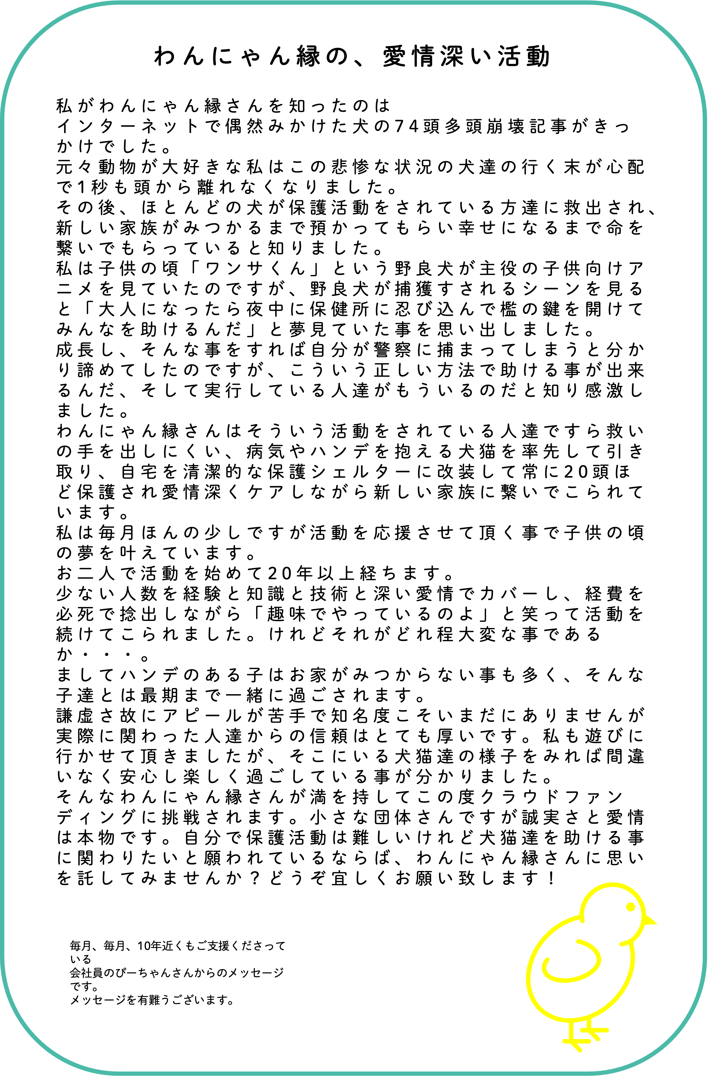 わんにゃん縁、えにし動物病院の活動にご賛同ご協力ありがとうございます。
