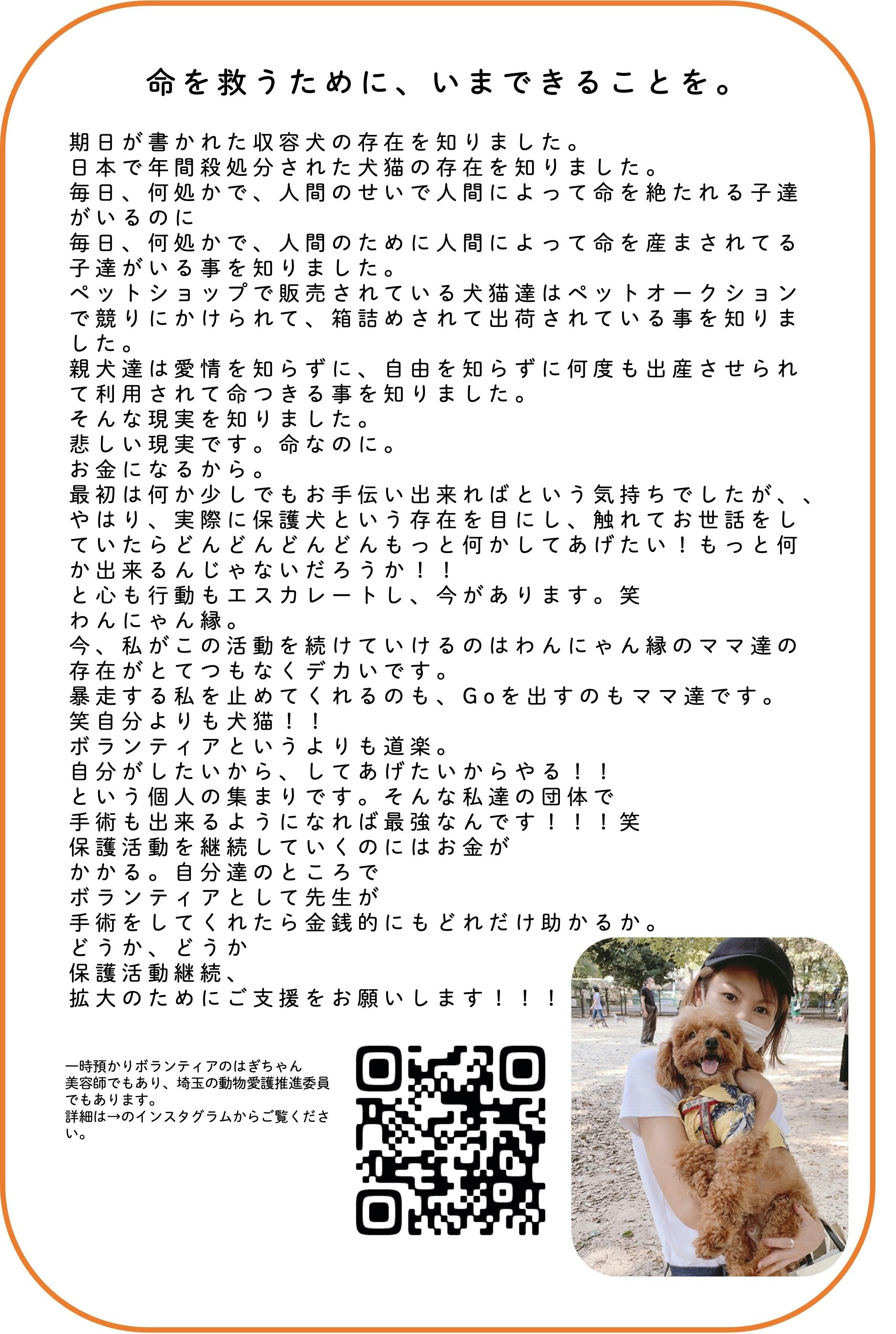 その手術が必要な保護犬保護猫を10匹保護したとして、200-300万円を個人で負担できるでしょうか?よほどのお金持ちでなければ無理がきてしまいます。