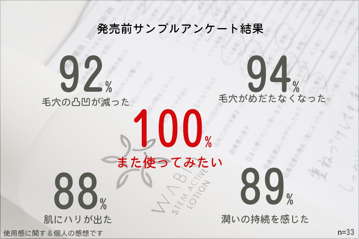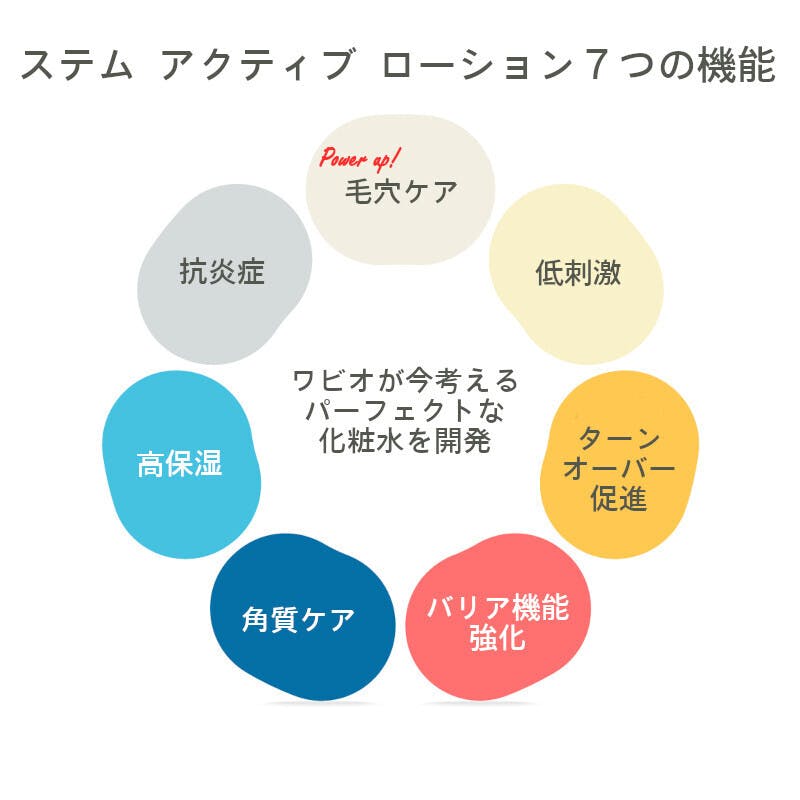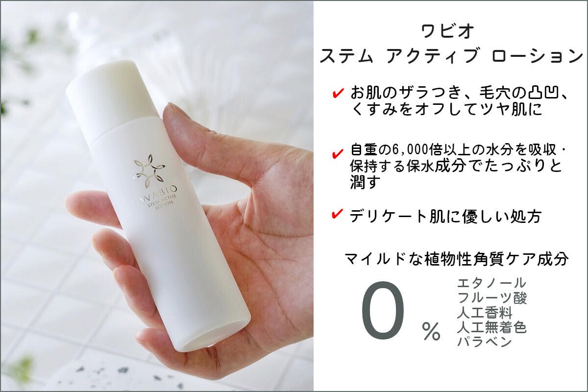 積み重なった乾燥角質を除去しながらたっぷり潤いをあたえて、ターンオーバーを促進する、そして、デリケートな年齢肌でも安心して毎日使える化粧水「ワビオ ステム アクティブ ローション」を開発しました。