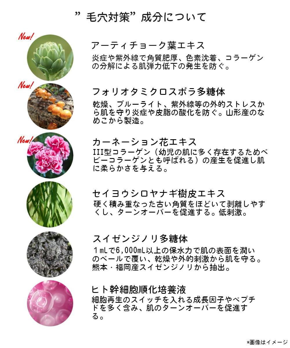 毛穴が目立つ4大パターンをしっかりフォローするために、新たに3つの成分を追加してパワーアップしました。