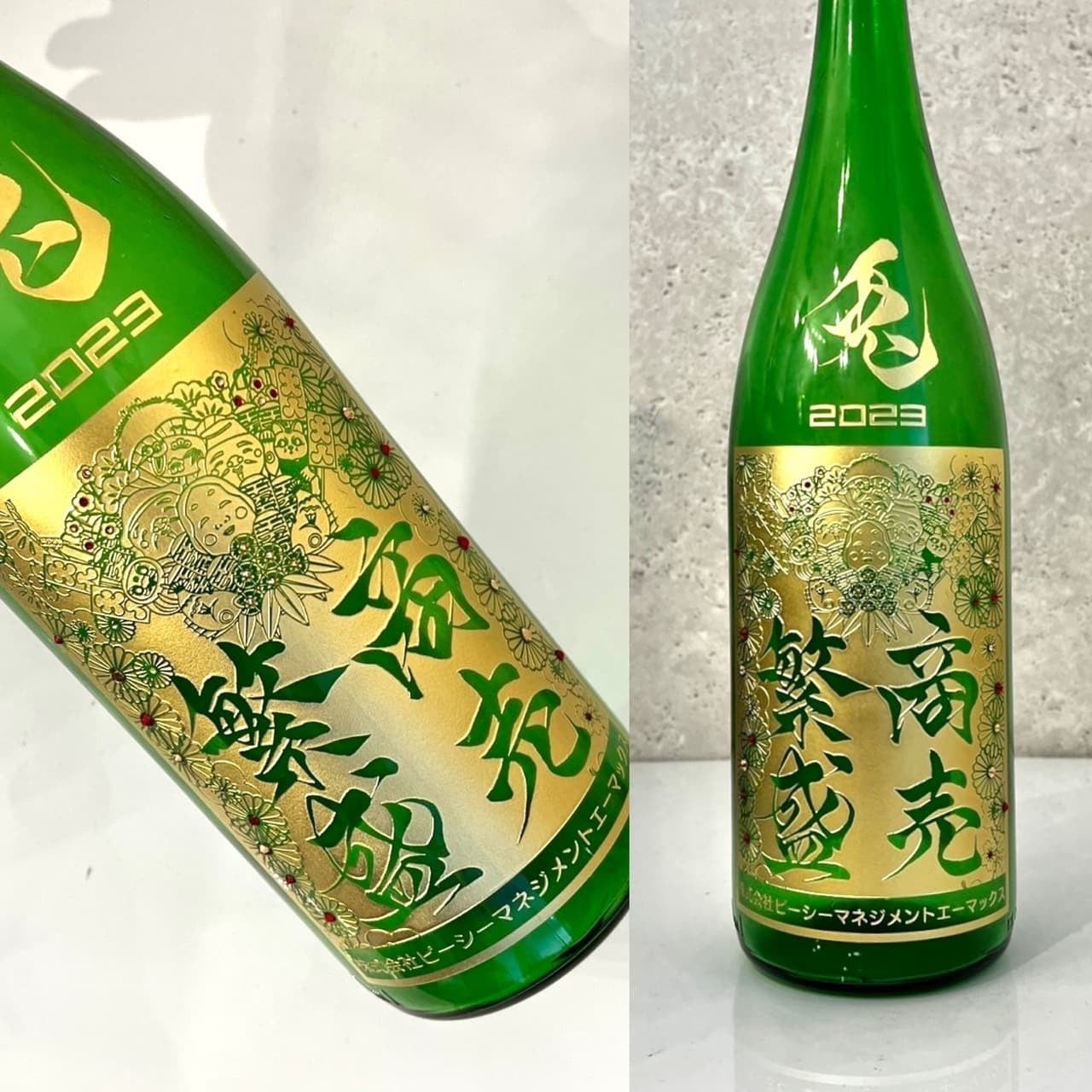 さらにそんな楽しい気分の盛り上げ役の一品として、「商売繁盛」の文字が華やかに彫り込まれた「福ボトル」はいかがでしょう。