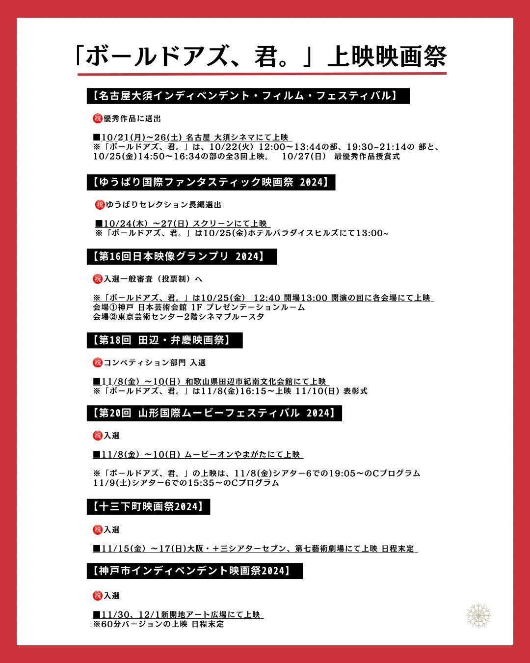 以上、さまざまな映画祭での入選により幾つもの上映予定がございます。