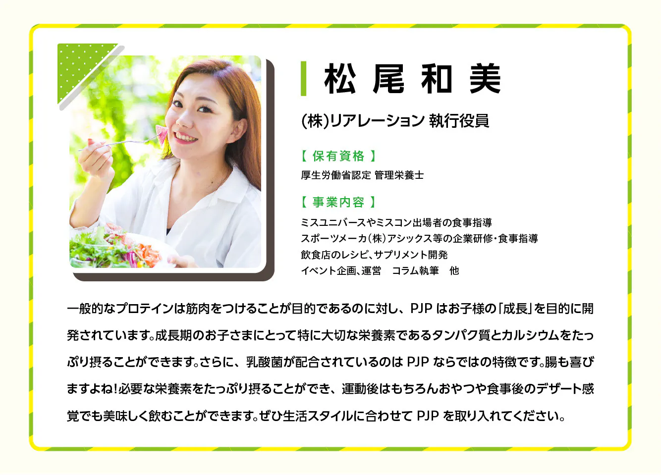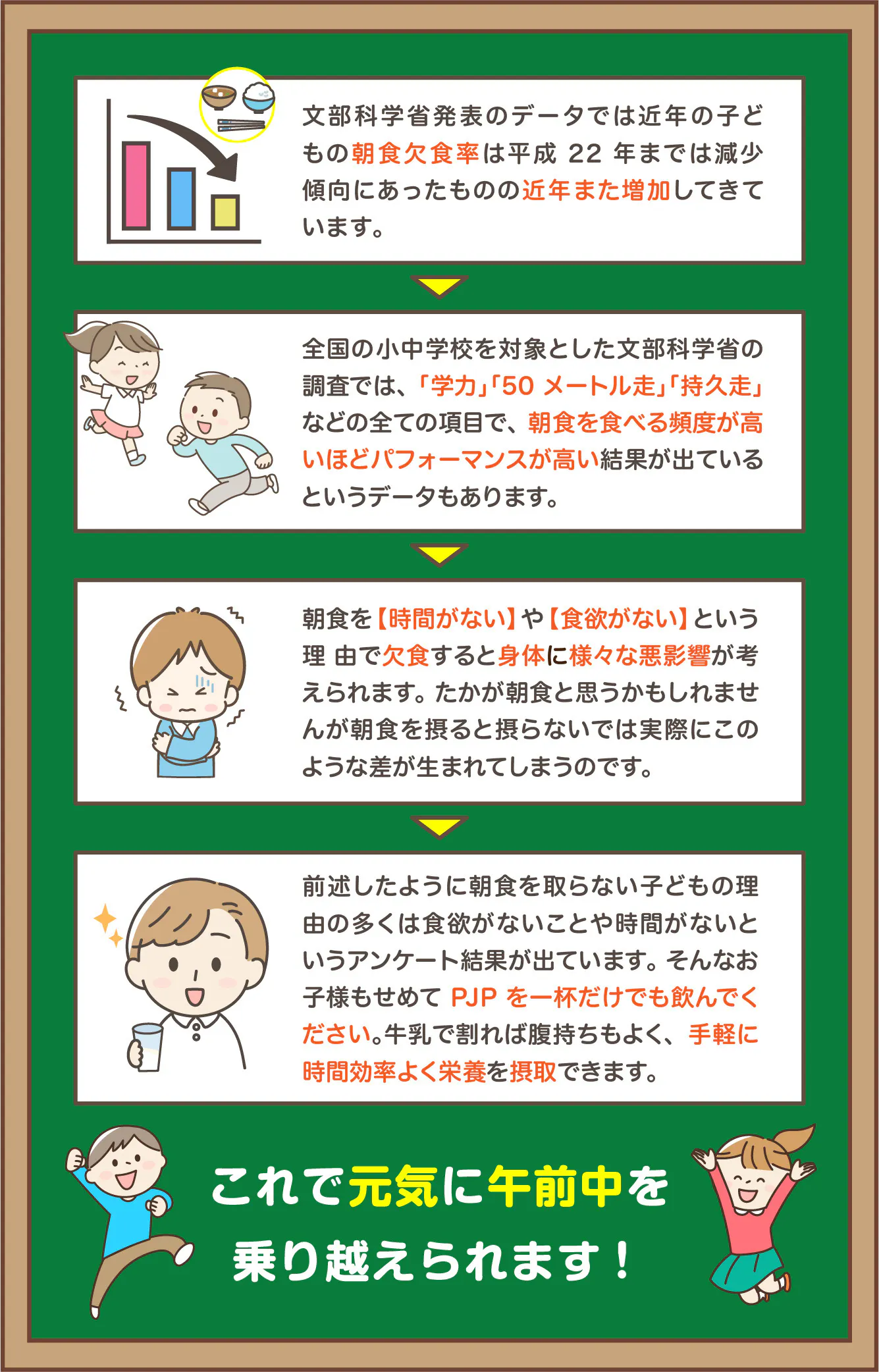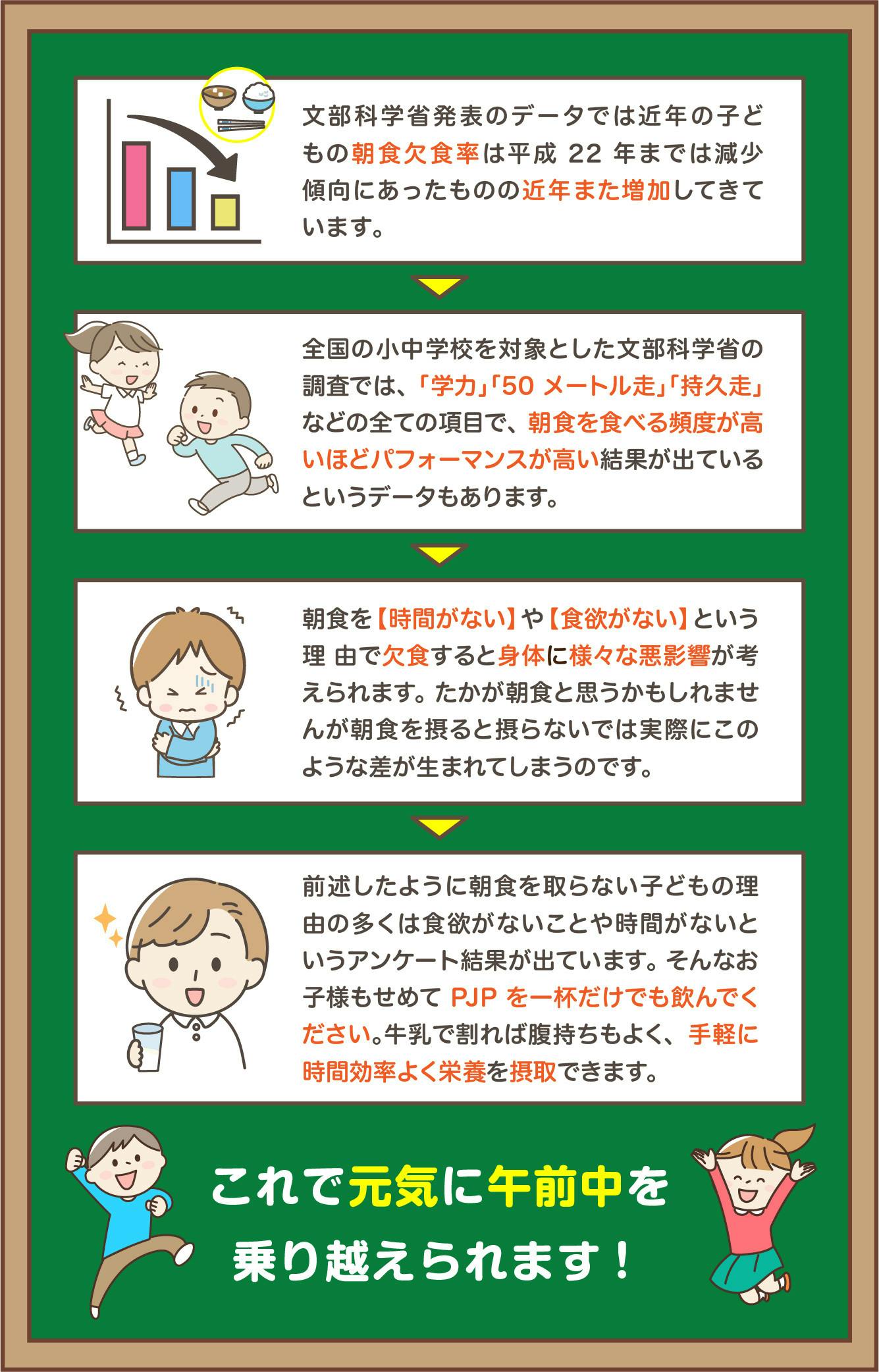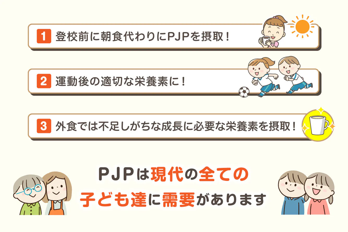 PJPの主成分であるタンパク質とカルシウムは子どもの成長に欠かせない重要な成分です。