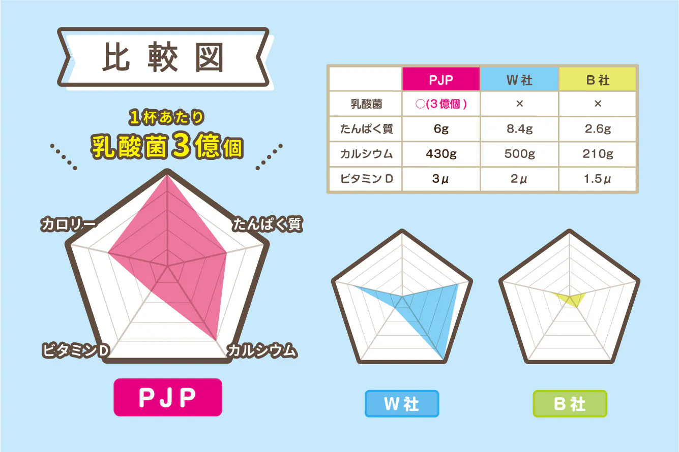 より良い成長の為に善玉菌をたくさん摂取していただきたいのでPJPには乳酸菌を高配合しています。
