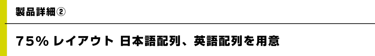 コンパクトな横幅でマウス稼働領域を確保でき、ファンクションキーも備え利便性を犠牲にしない、バランスの取れたレイアウトです。 一般的に普及しているキーボードやノートPCの配列からでも移行しやすいよう、日本語配列も用意しました。