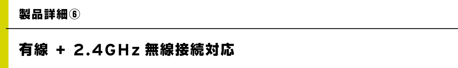 ケーブル脱着可能なUSB Type-C(USB2.0)の有線接続に加え、2.4GHz無線接続にも対応。