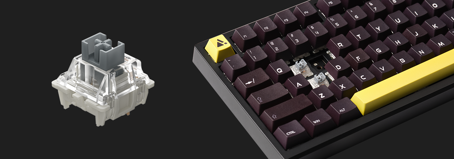 キースイッチの交換に対応しているので、お好みのスイッチに変更可能。出荷時にはGateron Pro Silverを搭載済みでお届けいたします。