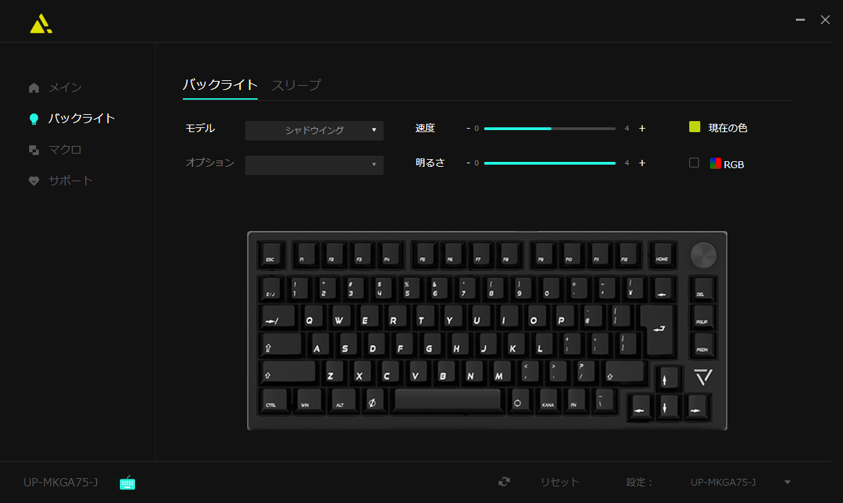 UP-MKGA75シリーズは、キーボード=入力機器の原点に立ち返り、 心地の良い打鍵感に拘り、ゲームプレイ時に安定したパフォーマンス向上を得られるような製品を目指しました。 最新のトレンドを盛り込んだスペックを採用し、ケース構造、キースイッチ、キーキャップが三位一体となって 至高の打ち心地を実現します。 また、75%レイアウトでありながら日本語配列バージョンも展開。 カスタマイズ製も備えており、初めてのメカニカルキーボードにも、 2台目以降のお客様にも満足いただける内容となっています。