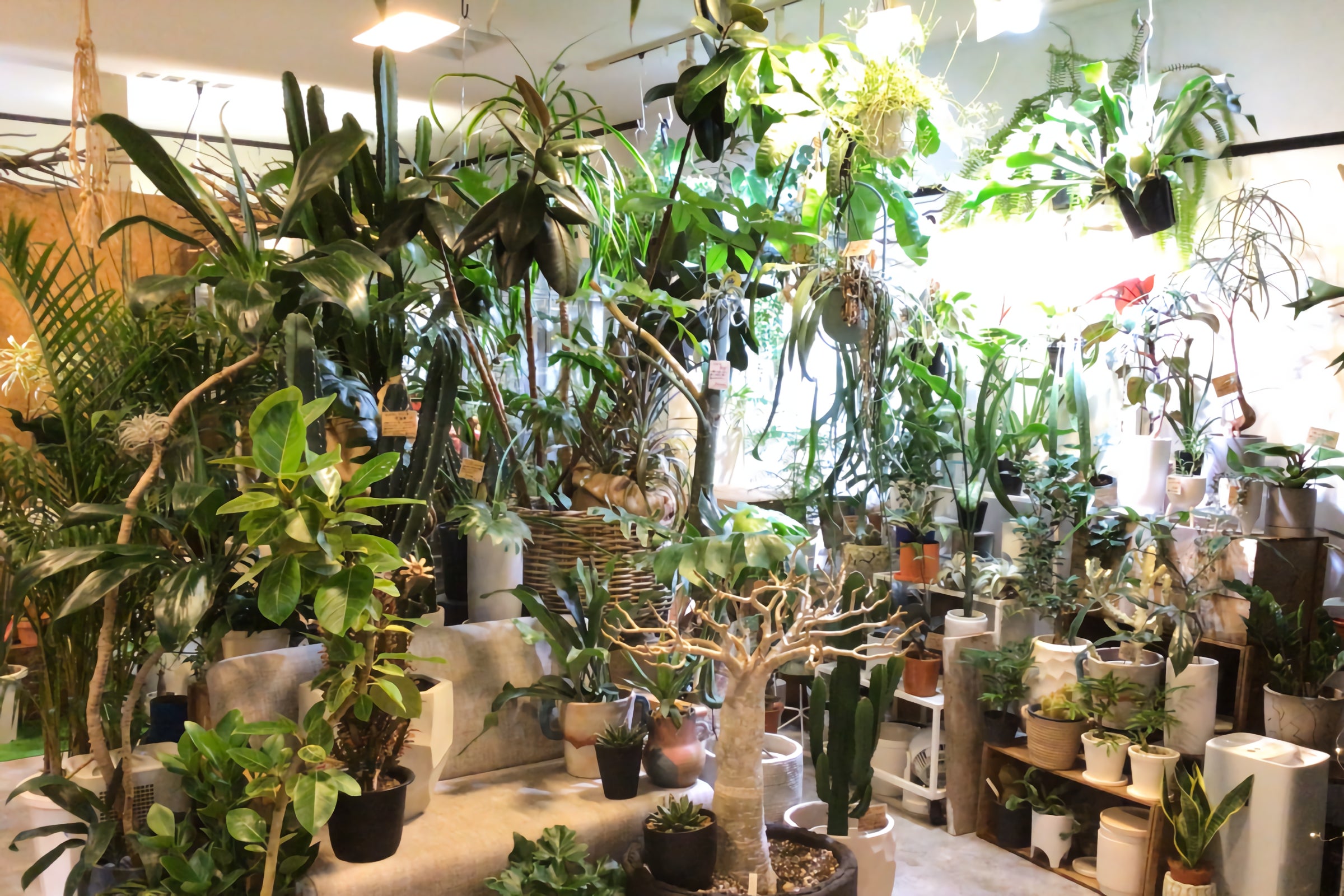 植物にとっても人間にとっても心地の良い店内になるよう、まずは床の張り替えや壁の張り替えなど、根本的なところから全て整える事を始めました。そして店前を通るだけで植物の存在に気づいてもらえるように、立派な樹勢のものをとりいれたり、葉の形が様々なもの、育てがいのあるもの、他ではあまり見かけないようなものなど品数を豊富に取り揃えました。