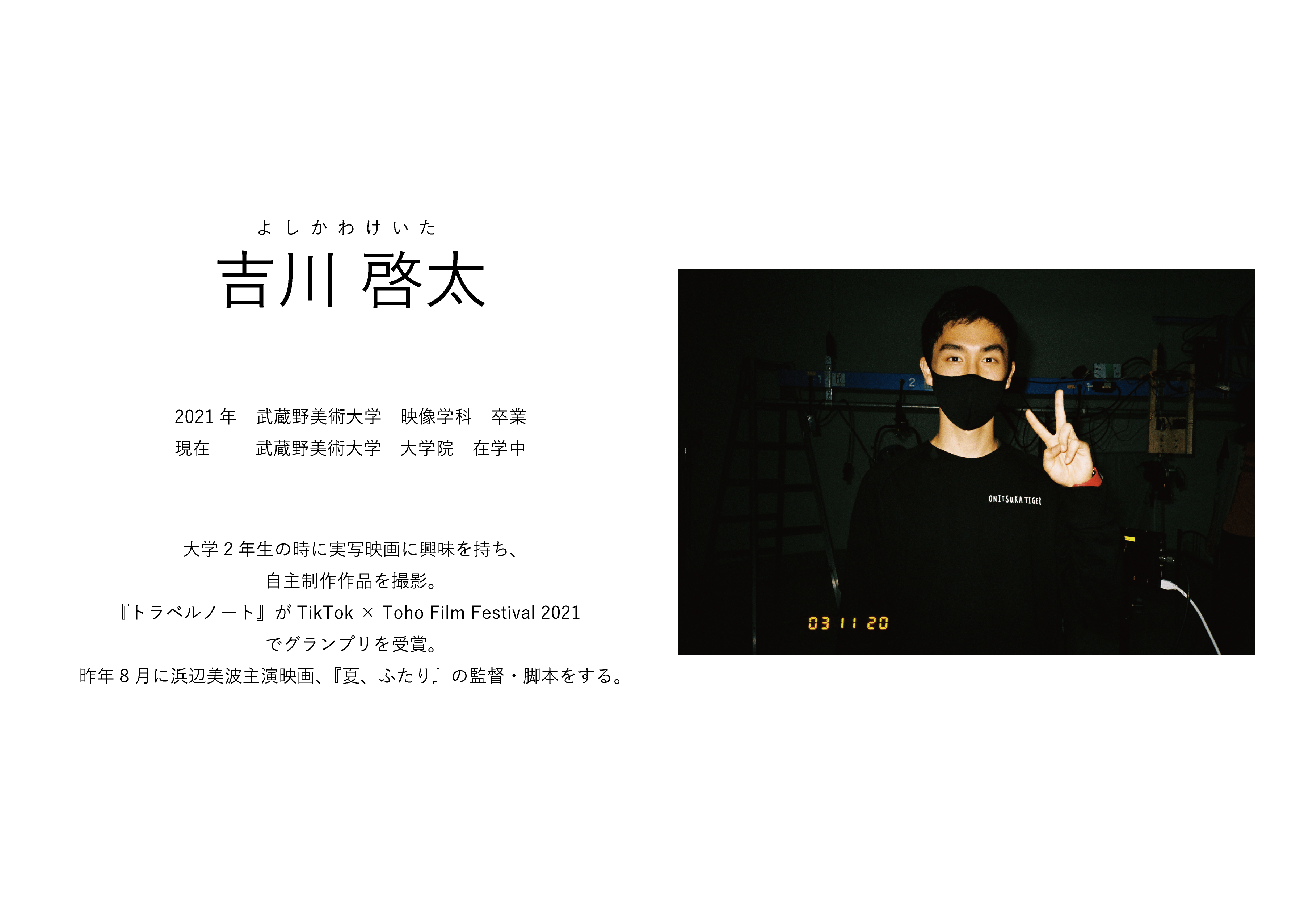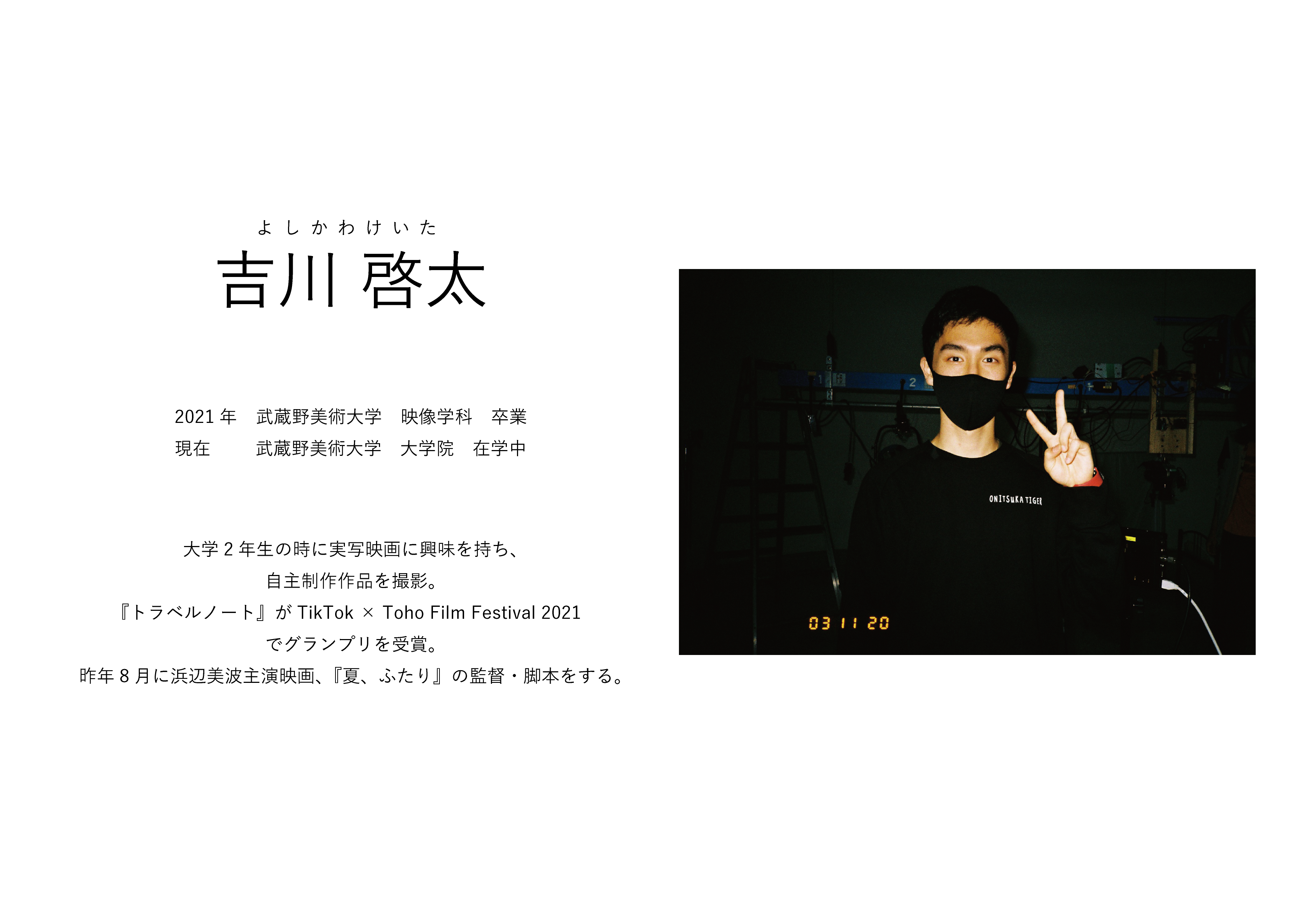 2021年10月 受賞記念短編映画「夏、ふたり」浜辺美波主演の監督・脚本を務める。