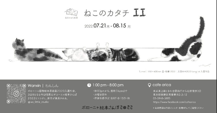 2022 8月 個展『ねこのカタチII』cafe arica 東京(板橋区、板橋区立美術館協賛)