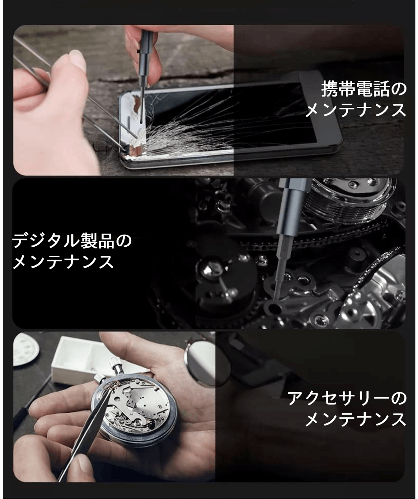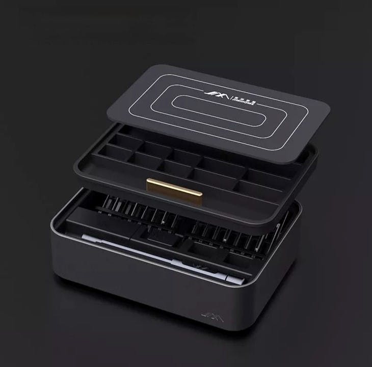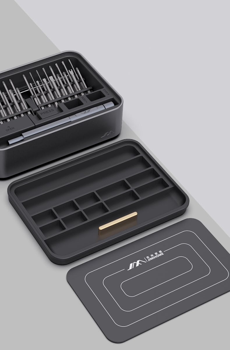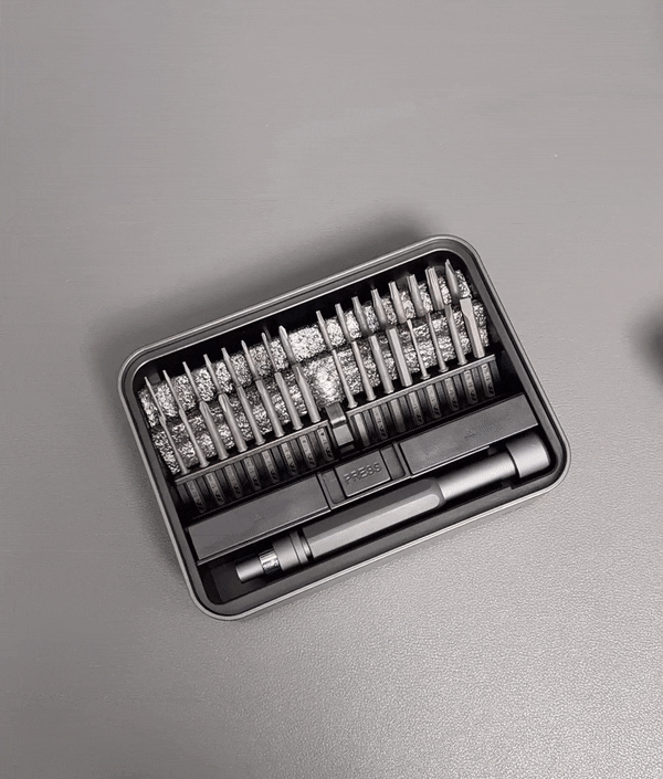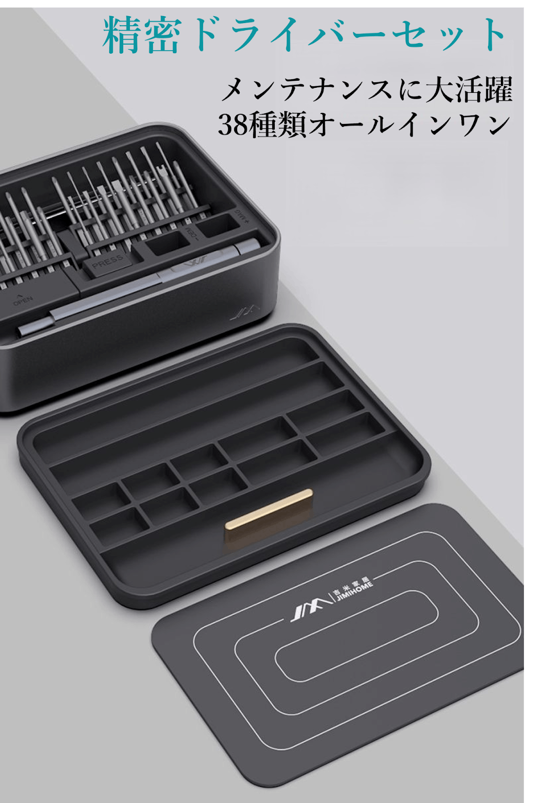 ”JIMIBOX 1.0”にはDIYや精密機器の修理で活躍する全38種のツールが揃っており、追加でビットを購入する必要はありません。