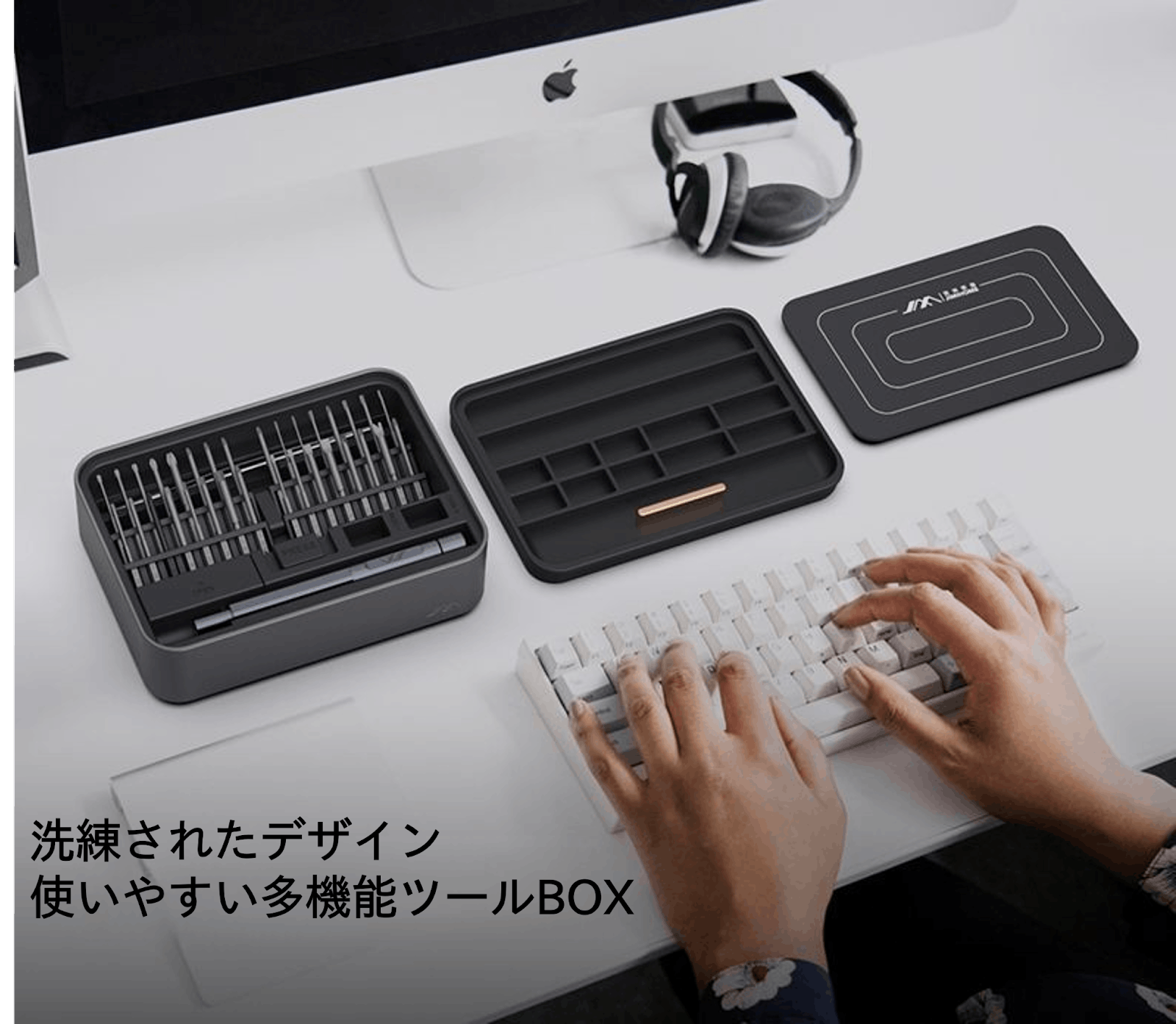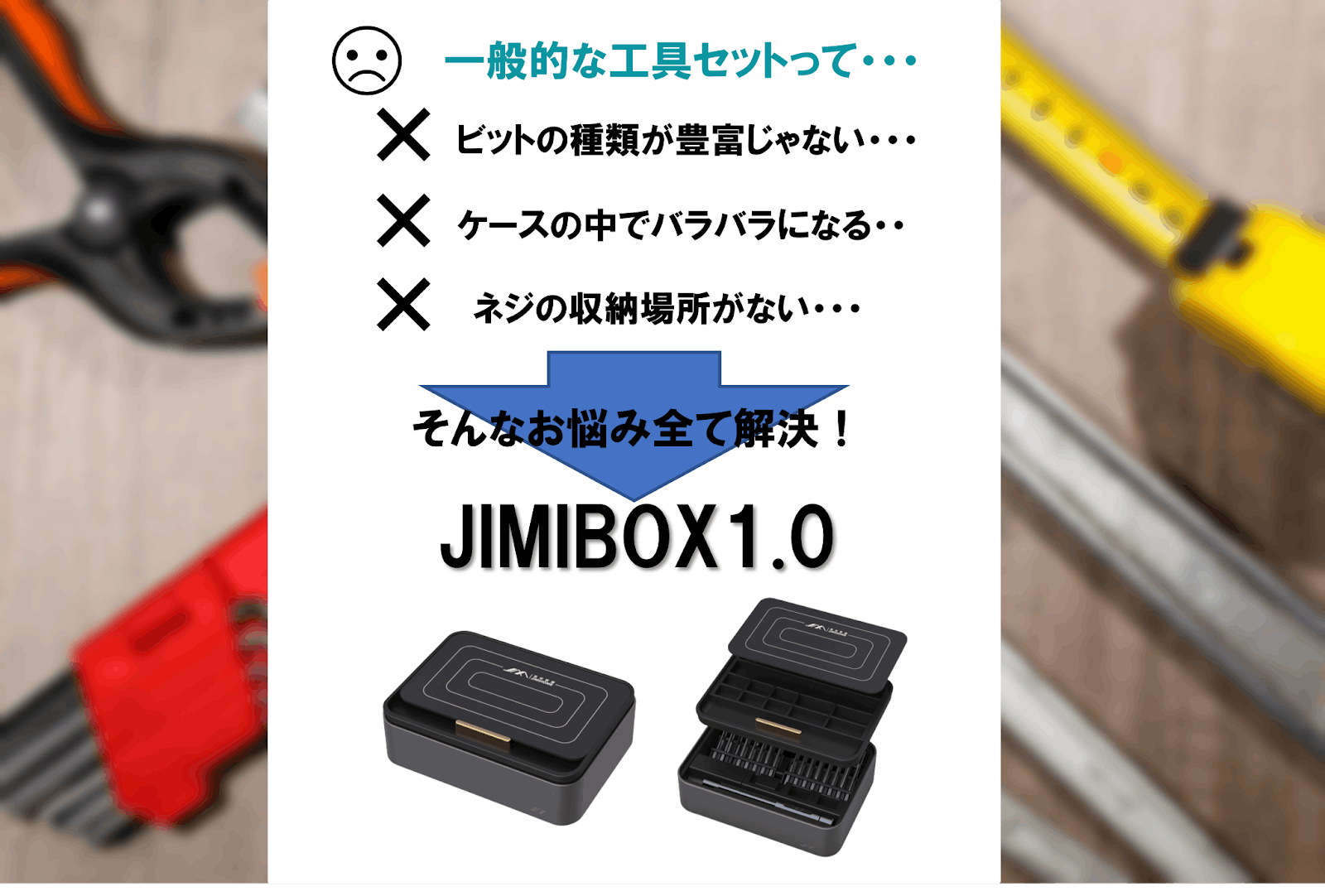 美しくコンパクトなプロダクトデザインはそのままに、ビットやネジ収納ケースを追加し、据え置き型に進化した工具セット、”JIMIBOX 1.0”をご紹介させて頂きます!!
