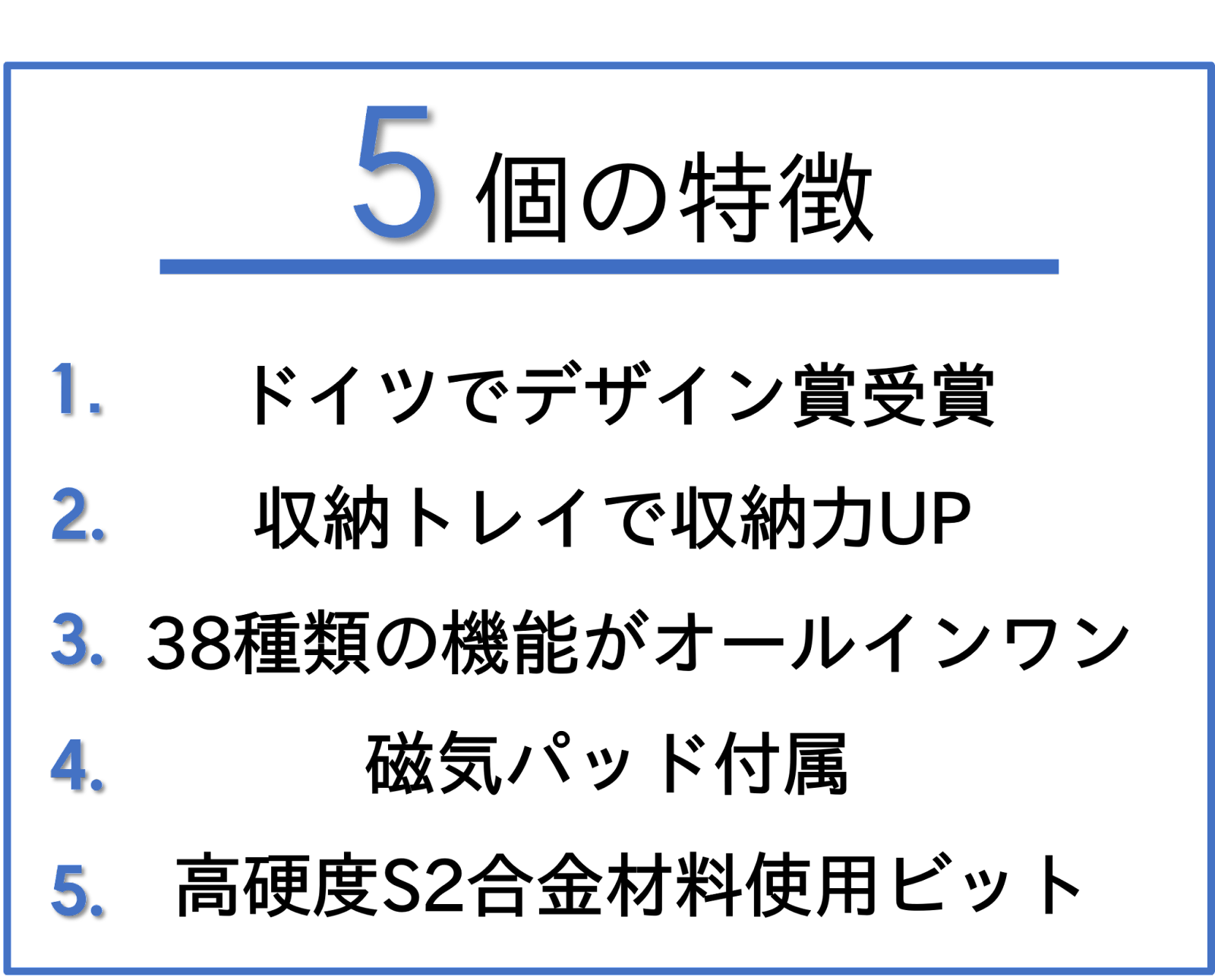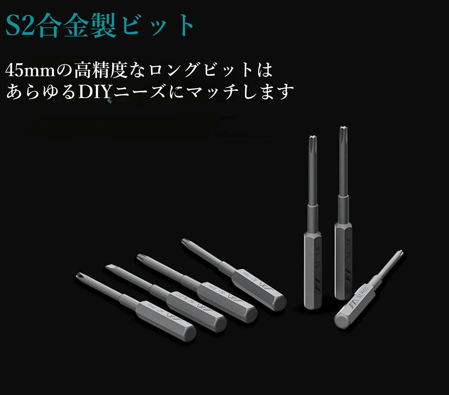 付属する32種のビット全てに高硬度S2合金を使用!丈夫で耐久性に優れています。
