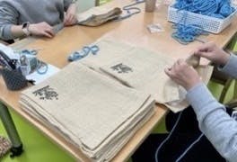 今日はサステナブルポーチ製作している写真をご紹介いたします。