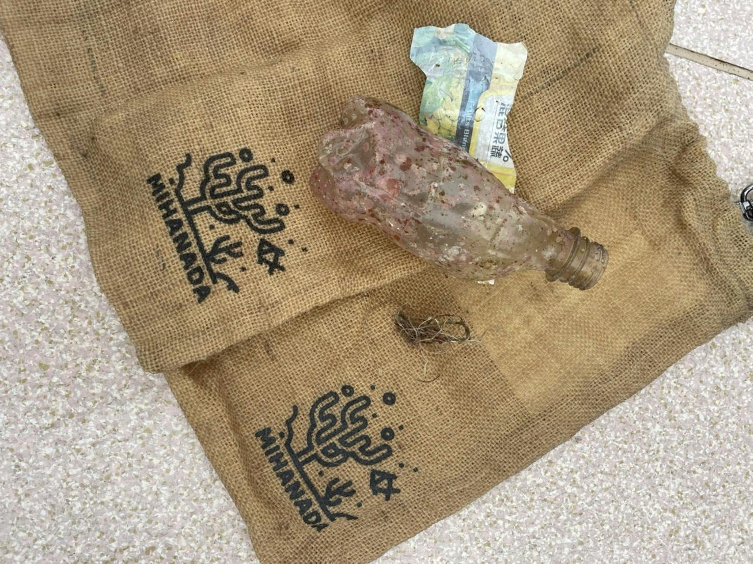 変色したペットボトルは、岩と同化して見つけるのが難しいです。