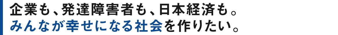 発達障害の人の持つ可能性を、企業が最大限に活かせるようになることで、当事者だけでなく、企業、日本社会が幸せになる。そんなニューロダイバーシティ溢れる社会を目指していきたいと考えています。