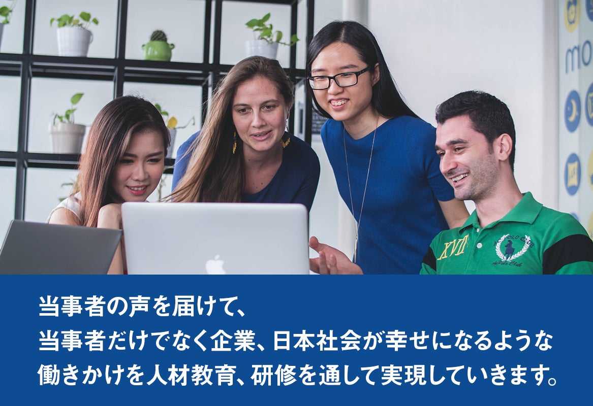 私たちは、当事者の声を企業側に届けることで、両者の架け橋となり、当事者だけでなく、企業、日本社会が幸せになるような社会の実現を目指します。