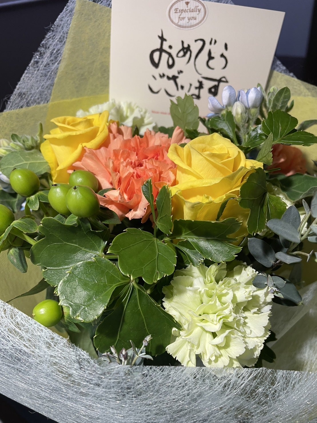 私が代表で受け取りましたが、このお花はご支援頂いた皆様のものです。