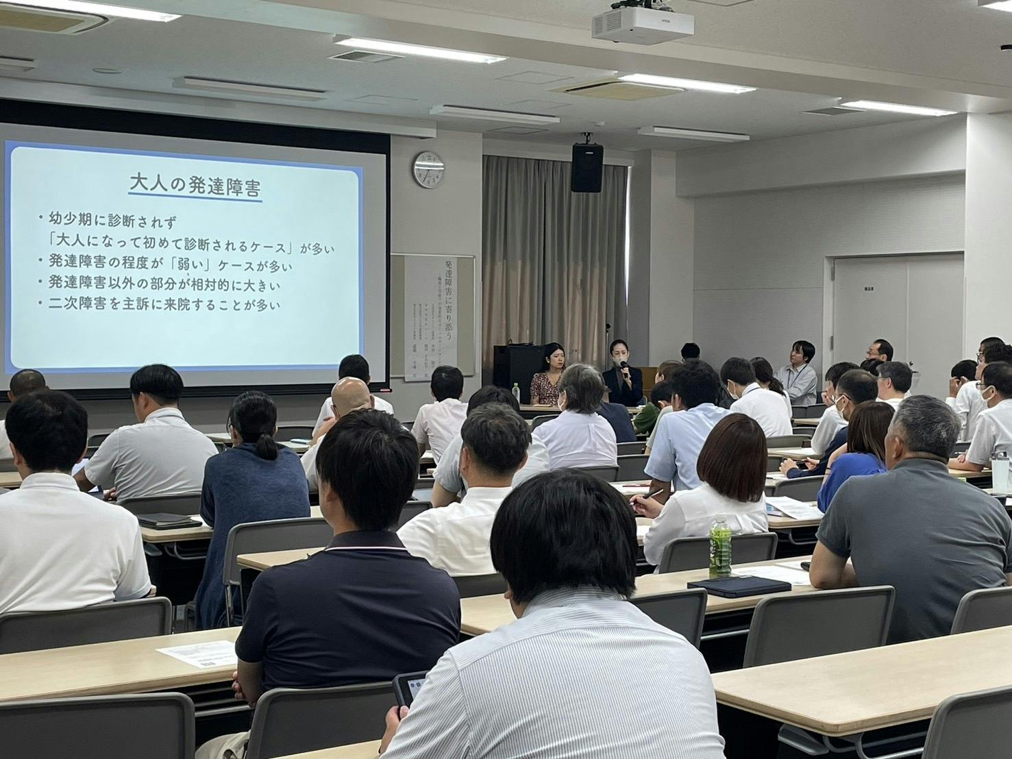 前半パートでは、産業医の木村先生から発達障害の基礎的な知識を解説しました。後半パートでは、放課後等デイサービスを運営するヒトツナグループ代表の遠藤さんから、教育現場での生徒への声掛けや支援方法について、実践的なアドバイスを行いました。