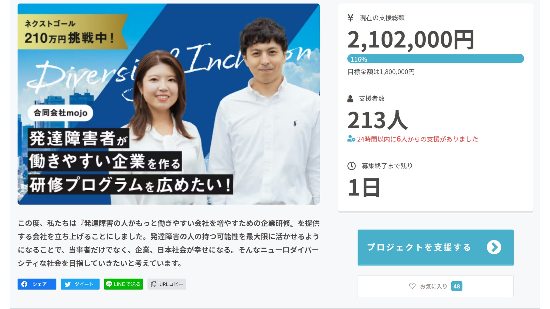 おはようございます!昨日1月23日24時をもちまして、クラウドファンディングが終了いたしました。達成した後も多くの方に追加でご支援頂きました。結果として、ご支援者 227名ご支援いただいたお金 2,116,000円と非常に多くの方から、大切なお金を預けて頂きました。本当にありがとうございます。お預かりしたお金を社会の役に立てるよう、活用させて頂きます。今後ともよろしくお願いいたします!※画像のお花はクラウドファンディング達成のお祝いに頂いたものです。 私が代表で受け取りましたが、このお花はご支援頂いた皆様のものです。 本当にありがとうございました。