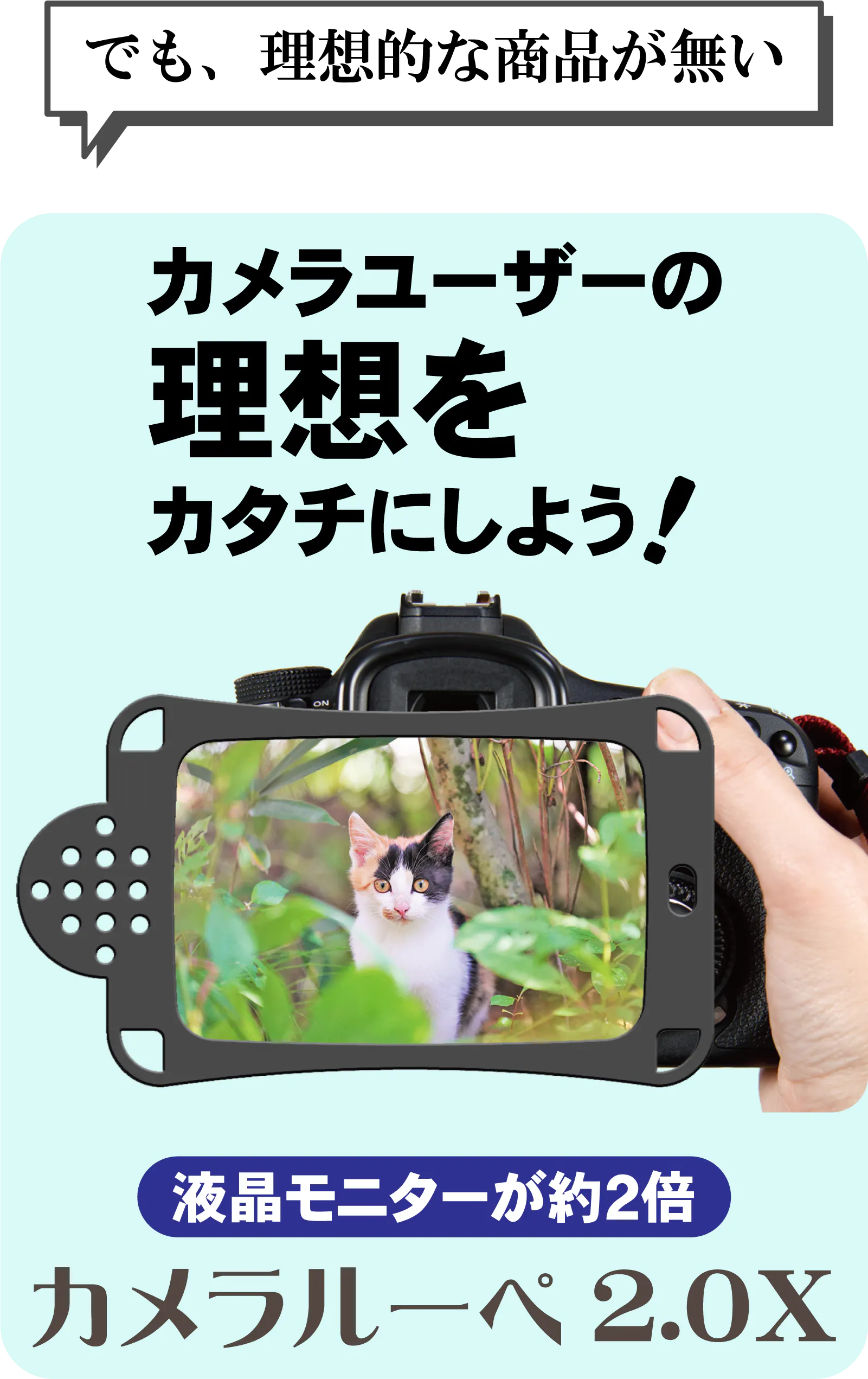 ■一眼レフカメラ等の液晶モニターが約2倍に大きく見えるカメラ専用ルーペ