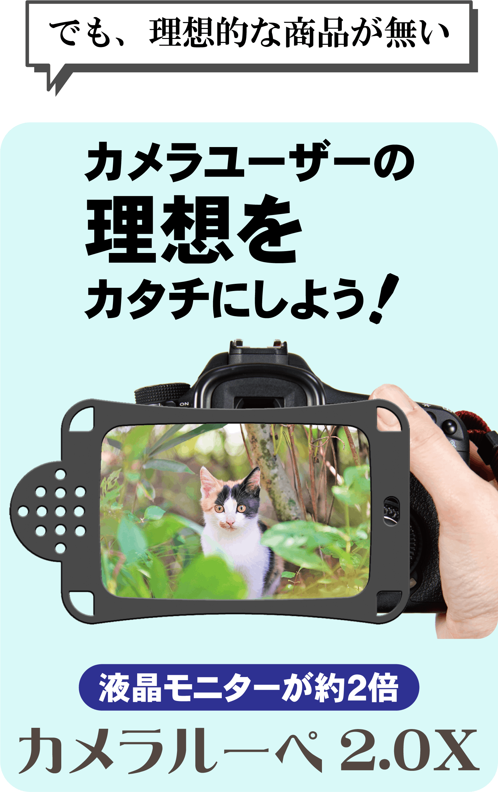 ■一眼レフカメラ等の液晶モニターが約2倍に大きく見えるカメラ専用ルーペ