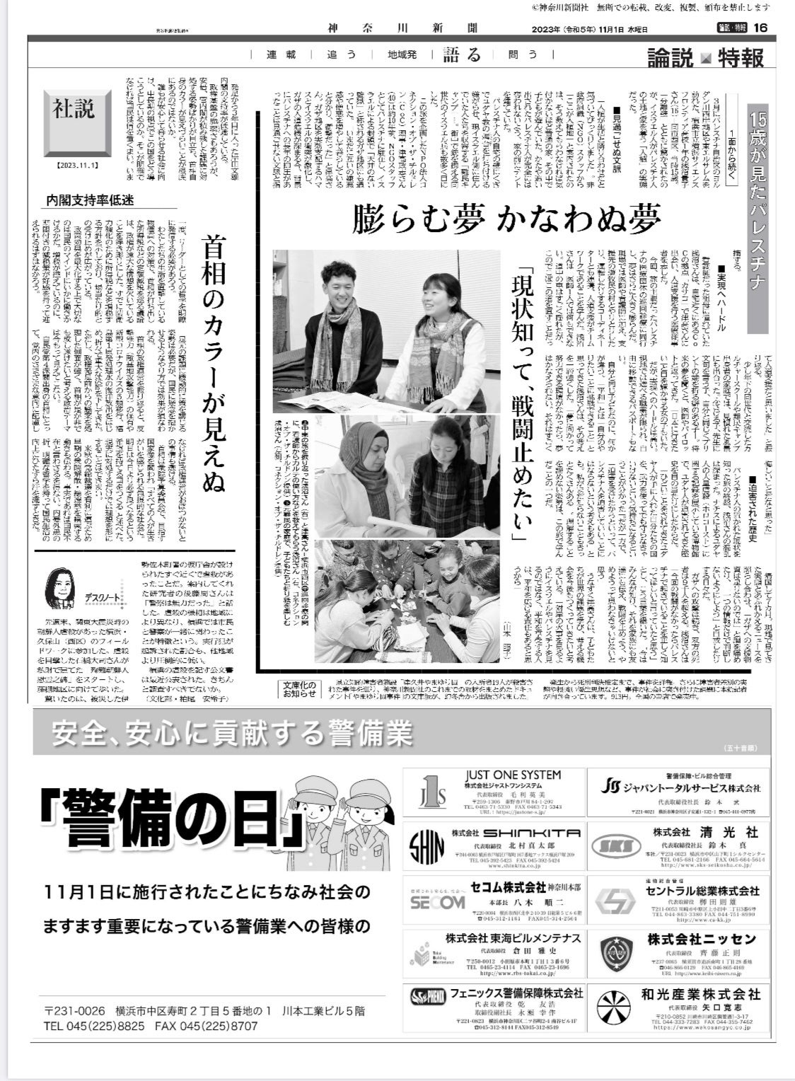 3月にパレスチナに渡航した貴子さんが、本日の神奈川新聞に掲載されました。