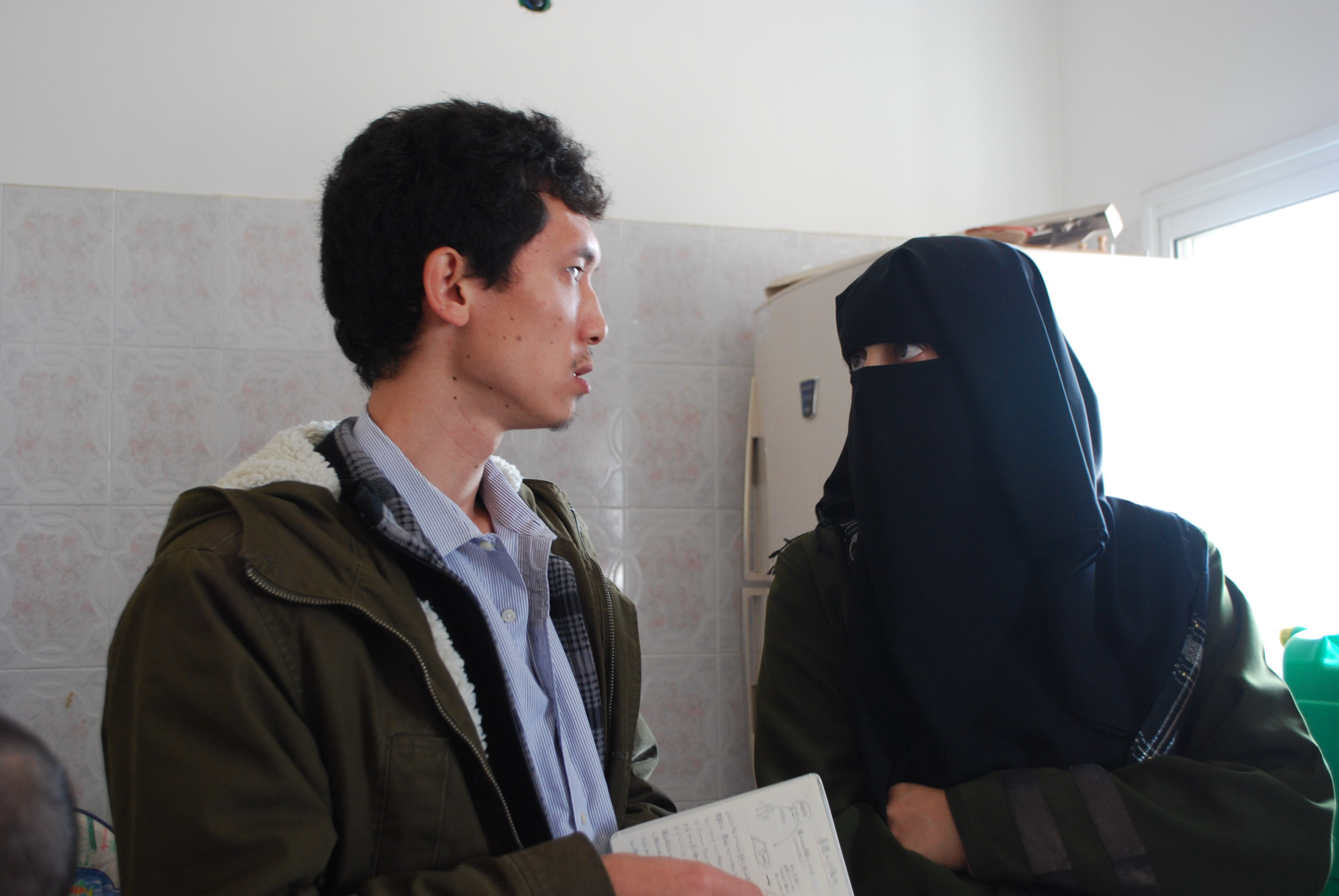 現地では、実際に難民キャンプや人道支援を行う医療活動などの現場を訪問し、事前にノートに書き出した内容を、支援するスタッフ、支援を受ける住民に取材します。