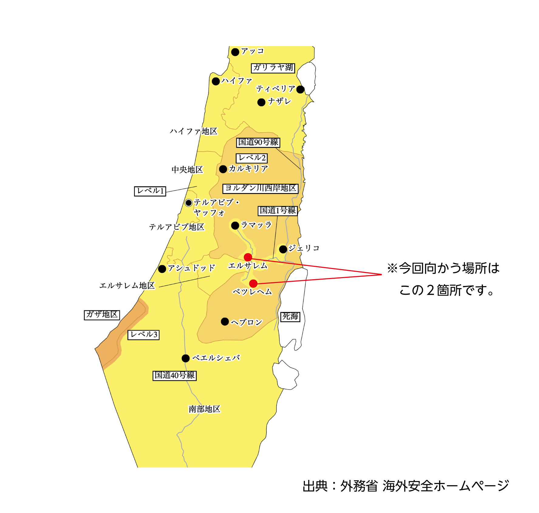 今回目的地としているエルサレムとベツレヘムは全世界から400万人以上の観光客が来る観光地。エルサレムにはNHKの海外支局があり、2019年には経済産業省の後援で、日本・イスラエルビジネスフォーラムが開かれ、100社の日系企業がビジネスの機会を求め参加しているような場所です。