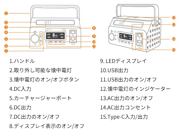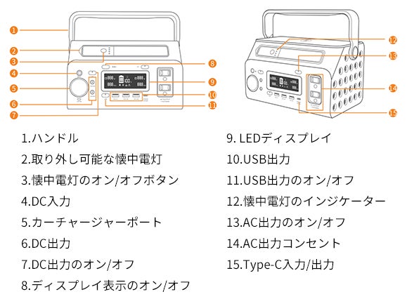 ・取り外せるLED懐中電灯つき、キャンプ、車中泊、災害時などに大活躍!