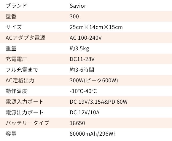 80000mAh(296Wh)の大容量、「Savior」なら十分な電力を供給できます。