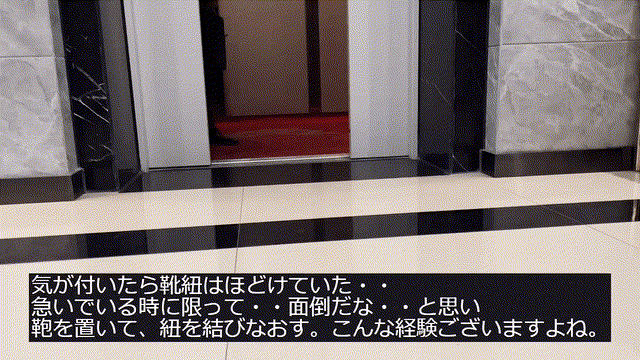 紐タイプビジネスシューズはとにかく履き脱ぎが面倒ですよね。朝忙しい時、履くのに紐を解き、脱ぐのにも紐を紐を解き・・・解かない時は、靴ベラを使い半ば強引に履く。更には通勤中解け、結び直す経験をされたビジネスマンは少なくはありませんよね。紐が解け、結び直す!その動き自体を無くしたい!変えたい!
